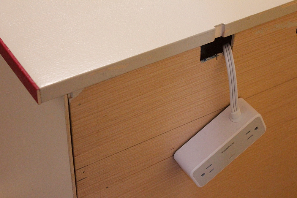 자질구레하게 손 가는 작업들도 열심히 챙겼다. 서랍장 뒤쪽으로 콘센트가 있어서 그 자리에 구멍을 뚫어 다시 책상 서랍뒤로 빼는 작업을 했다. 처음 생각했던 곳과는 다른 곳에 멀티탭을 설치하려고 구멍을 새로 또 뚫어야 했다.