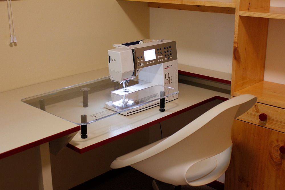 이 모든 것의 발단이 되었던 높이 조절 매립형 재봉틀 책상은, 정말 원하는 대로 완성되었고, 처음에 계획했던 깊이가 어쩐 일인지 딱 맞지 않았지만, 높이 조절을 통해서 재봉틀을 무사히 놓을 수 있게 되었다.