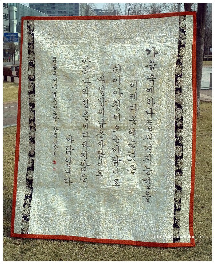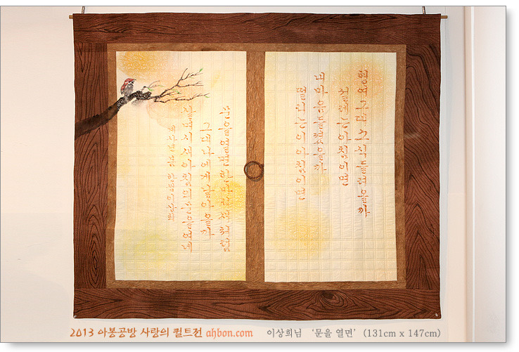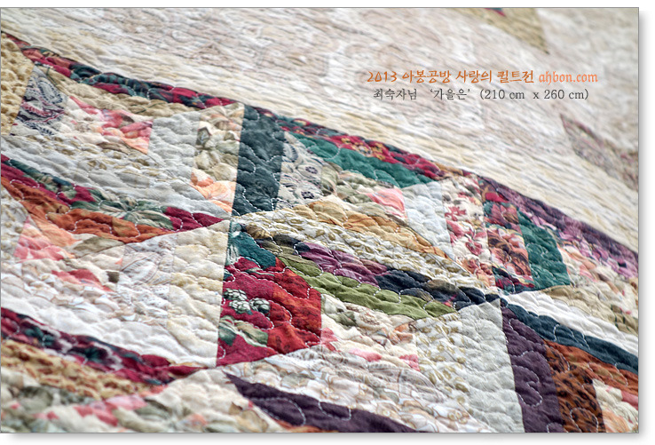 퀼트 하나도 모르는 초보로 공방에 들어와서 전시회를 거듭하며 이런 대작을 만들어내고, 누구나 감탄할 만큼 이렇게 꼼꼼하게 퀼팅한 최숙자님의 작품을 보면, 가슴이 찡해오며, 얼마나 뿌듯한지 모릅니다.