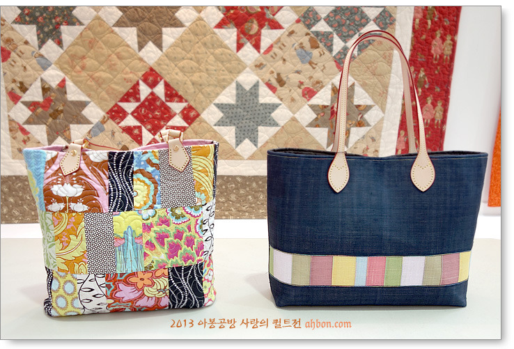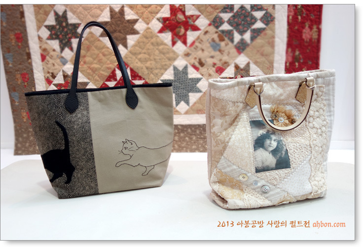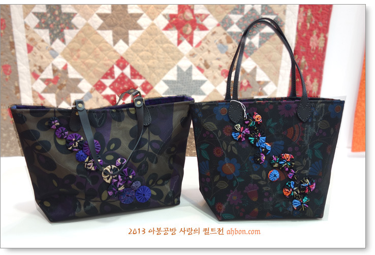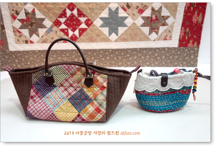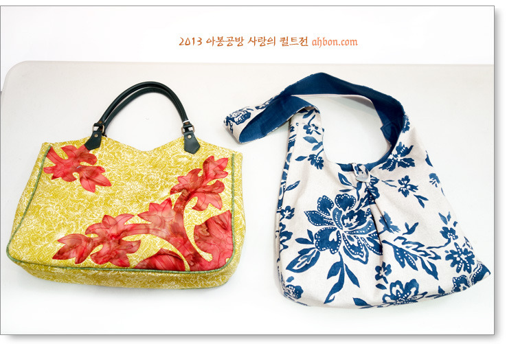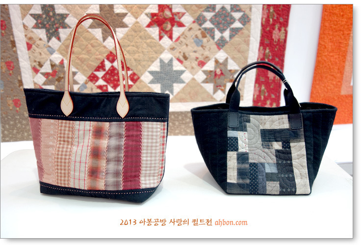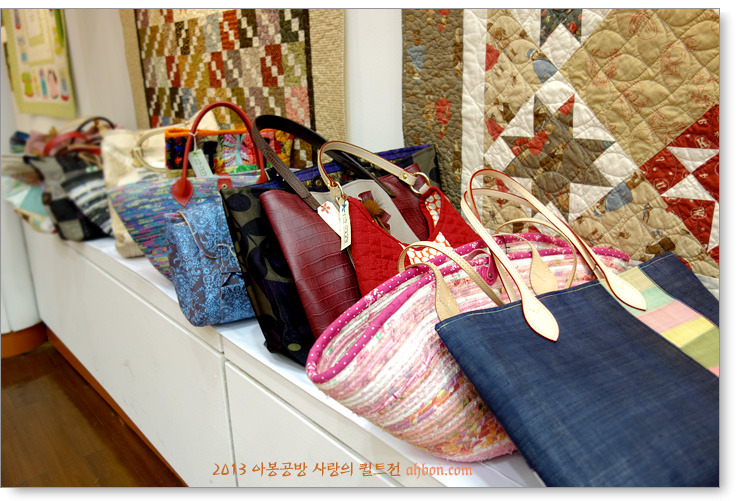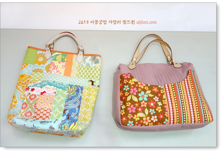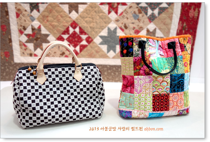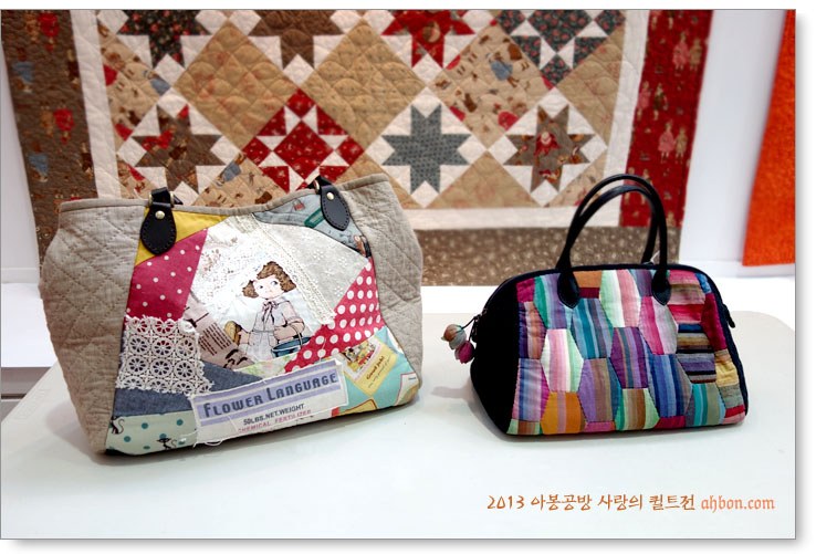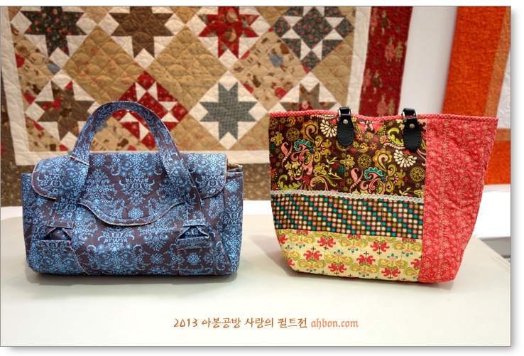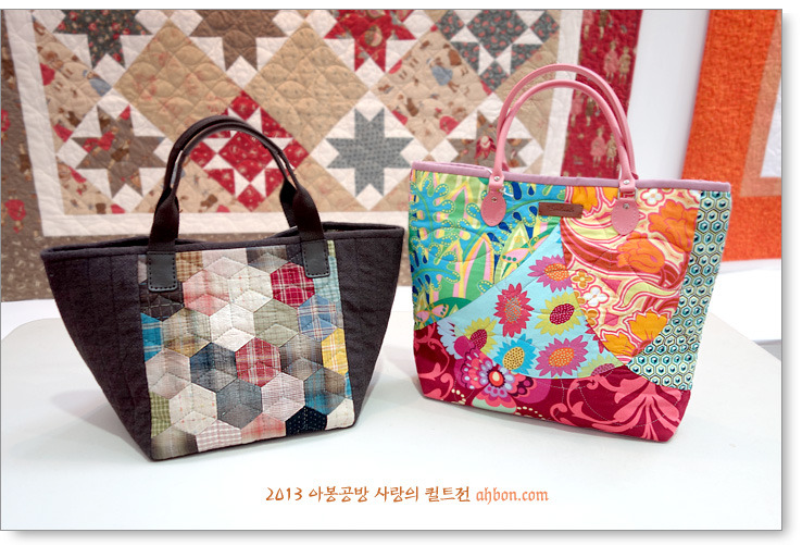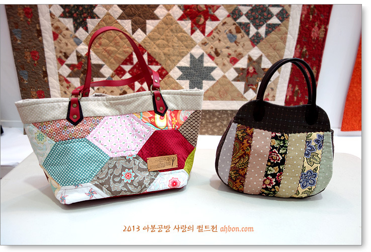 정성스러운 육각형의 연결을 보면, 퀼트가방이 갖는 매력을 느낄 수 있어요. 쉽지않은 곡선의 패치를 넣어서 화려하게 꾸민 가방도 눈에 확 들어오네요.