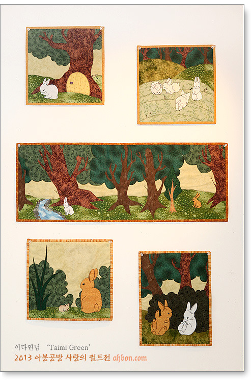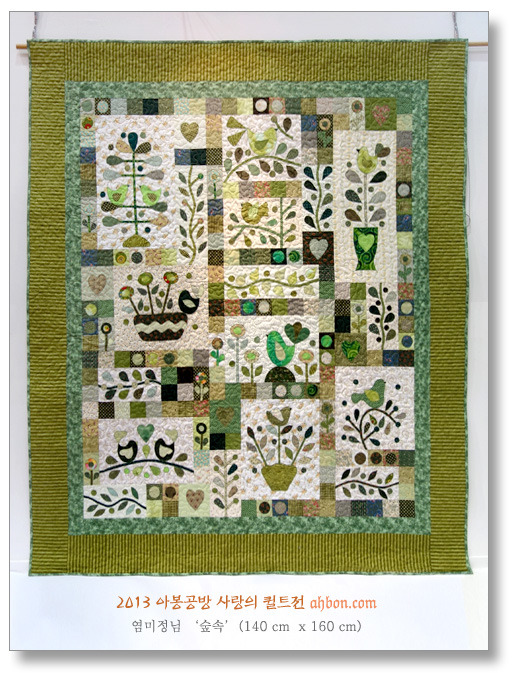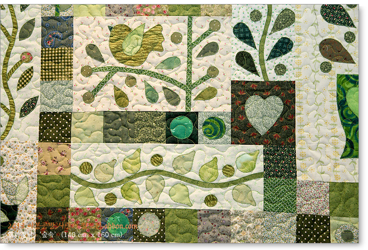 녹색계통의 천들만 모아서 꾸민 작품인데요,다양한 종류의 녹색이 모여서 전혀 단조롭지 않은 색상의 조화를 보여줍니다.