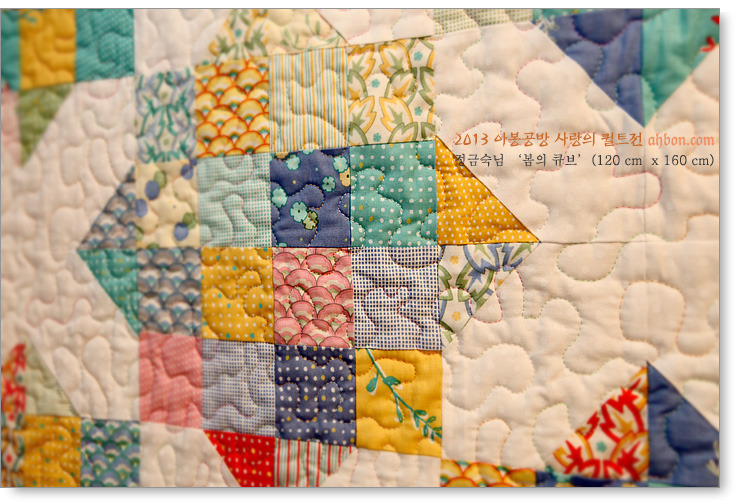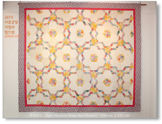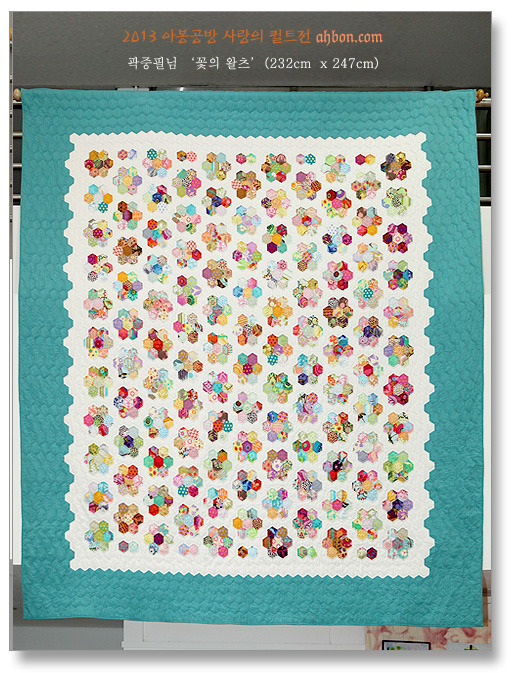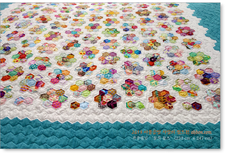 꼼꼼함으로 명성을 날리는 곽중필님의 작품입니다. 올해에는 큼직한 헥사곤을 연결한다더니, 이걸 큼직하다고 불렀더군요. 작품명에 맞게 정말 흰 바탕에서 색색의 꽃들이 춤을 추는 것 같습니다.