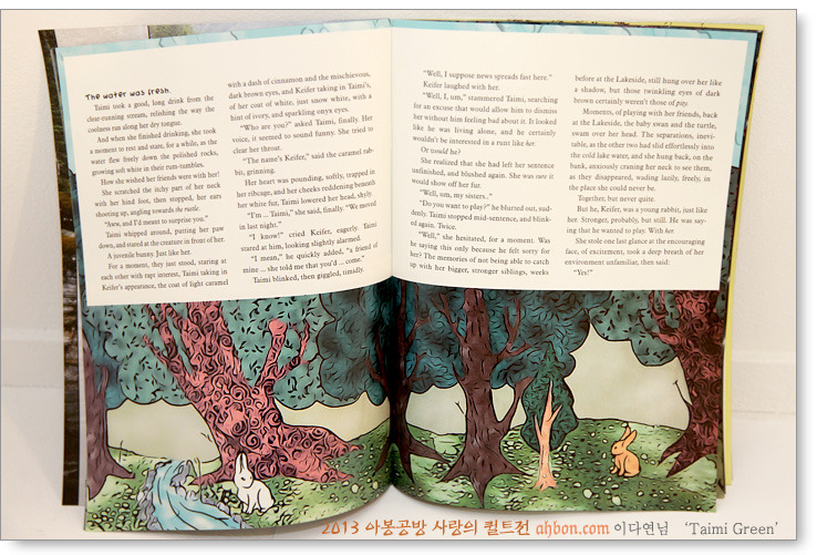 17세 소녀의 작품입니다. (제 딸이예요^^) 영어로 스토리를 써서 격월로 잡지를 출간하고 있었는데, 늦봄호에 이 토끼 Taimi를 주인공으로 해서 글을 썼답니다. 매번 삽화도 직접 그리는데, 이번에는 퀼트로 해서 꾸며넣고 싶다고 이렇게 만들었네요.