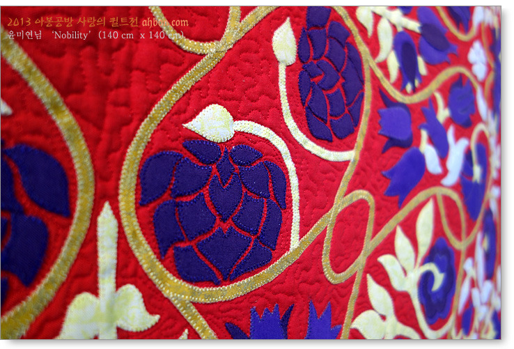 이 작품은 중국의 상하이퀼트전에 출품해서 파이널 리스트까지 올라갔던 작품으로 붉은 색과 금색의 화려함이 눈을 사로 잡습니다.