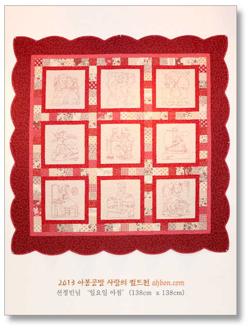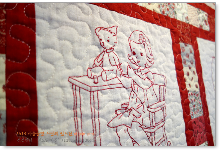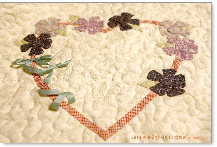이 작품은 기증받은 탑을 아봉공방에서 박경하님이 누벼서 내놓은 것입니다. 원작자의 성함을 몰라서 적지 못했는데요, 사랑스러운 아플리케가 정교합니다.