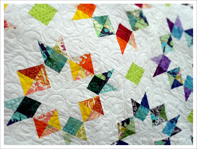 별 바깥쪽의 삐죽삐죽 솟아오른 예쁜 색감과 더불어 자유로운 퀼팅이 화려함을 더해줍니다.