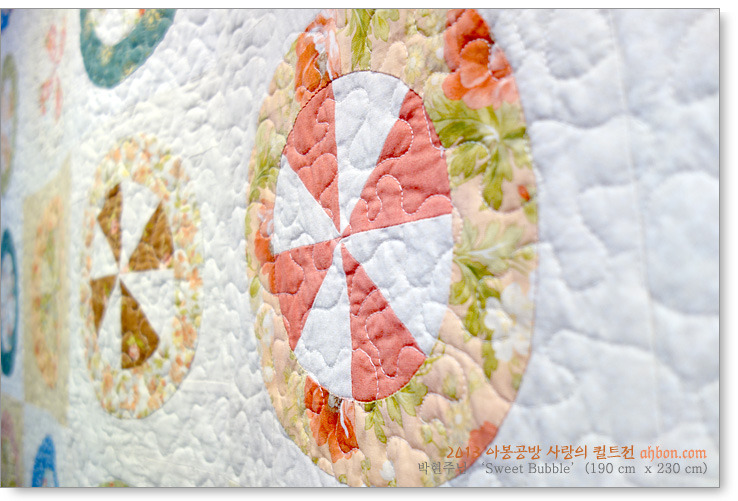 아봉공방의 공인된 머신퀼터로의 면모를 보여주는 퀼팅입니다. 오래 두었던 탑을 누비셨다 하셨는데, 내공이 느껴집니다~