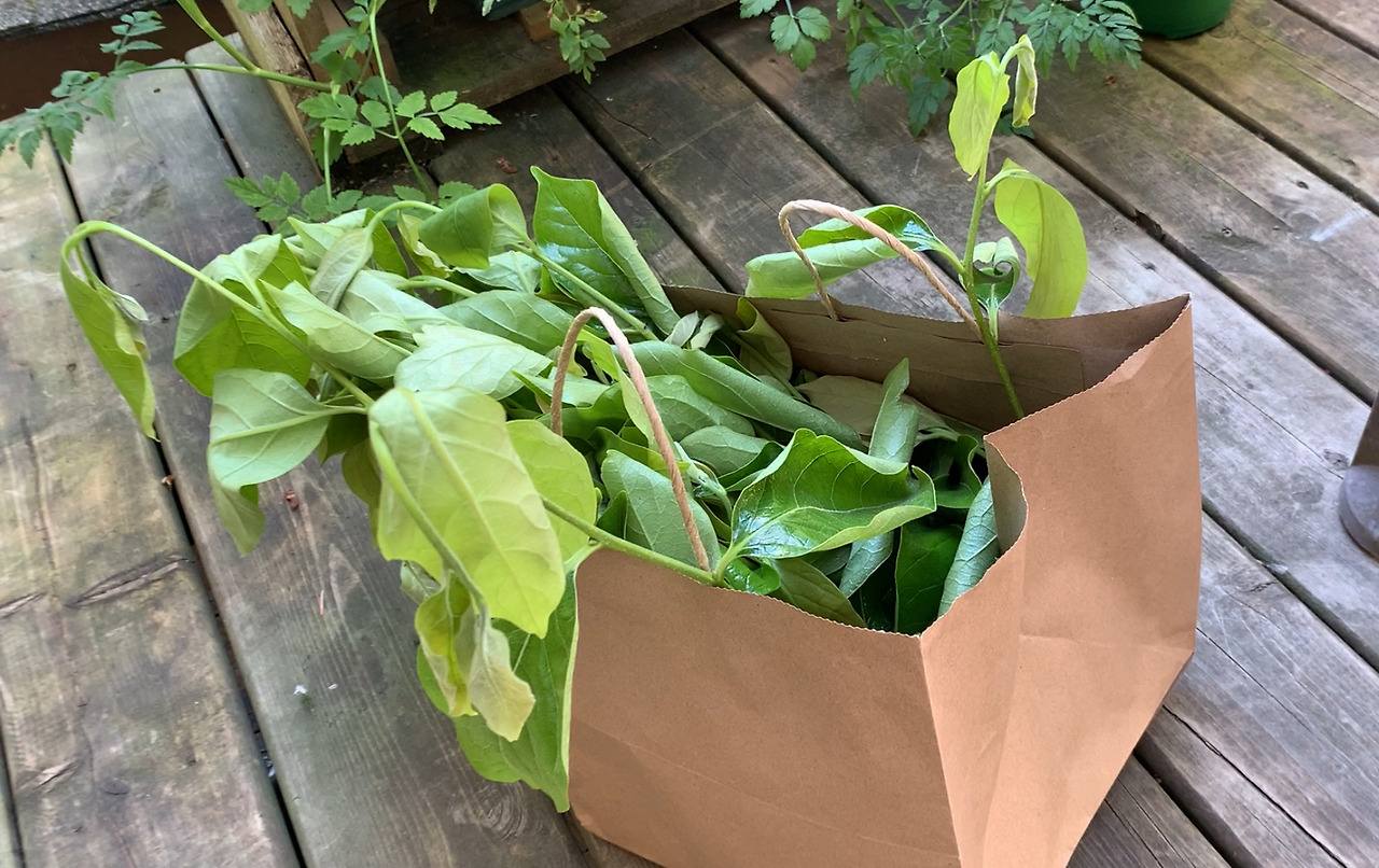 그런데 최근에는 아주 귀한 것을 받았다. 나는 작은 구기자 모종을 드렸는데, 감잎을 쇼핑백 하나 가득 따다 주셨다.