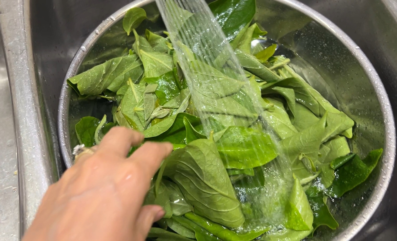 3. 잎을 깨끗한 물로 두세 번 헹궈준다.