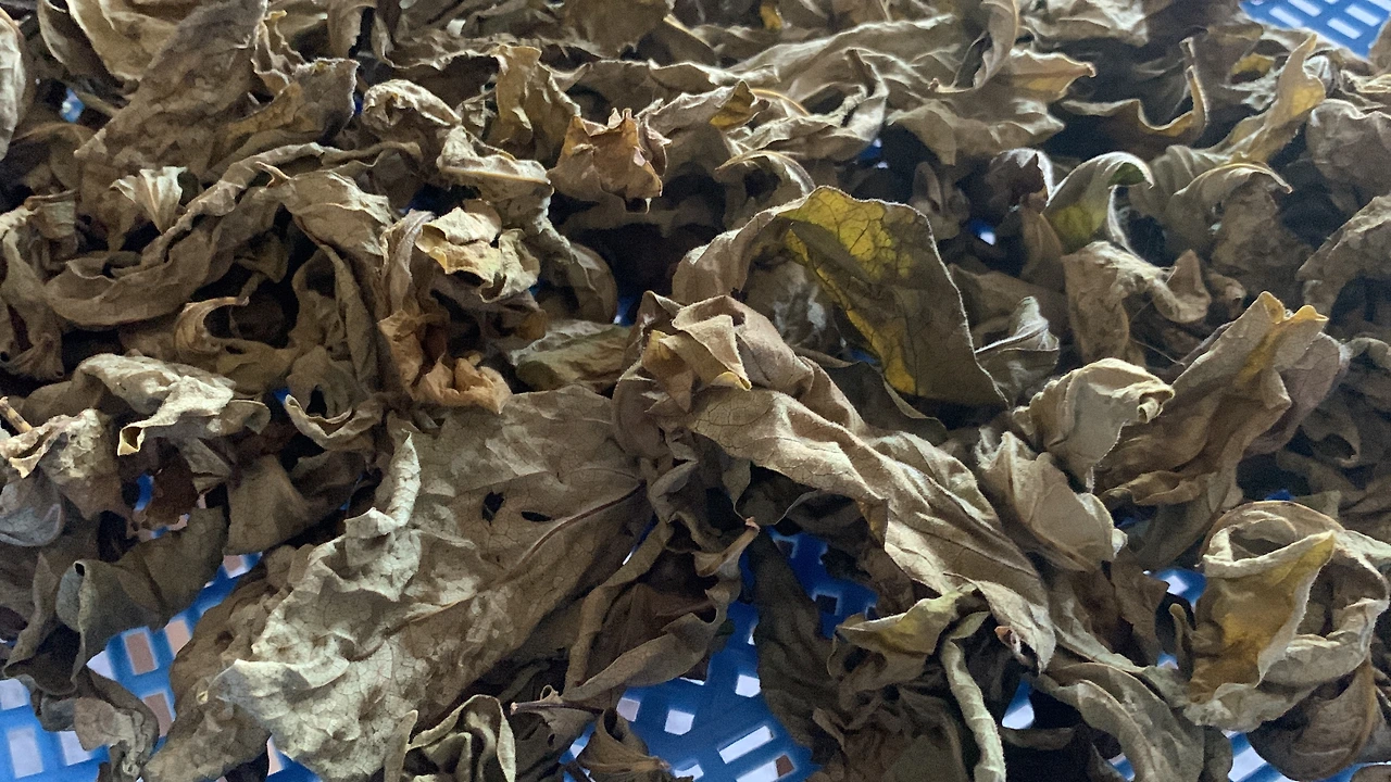 사흘이 지나니 제법 말랐다. 하지만 역시 그대로 차로 쓸 만큼 마른 것은 아니었다. 그냥 약간 뻣뻣한 느낌이었다. 그래도 부피는 제법 줄어서, 3개였던 채반에서 2개로 옮겨왔다.