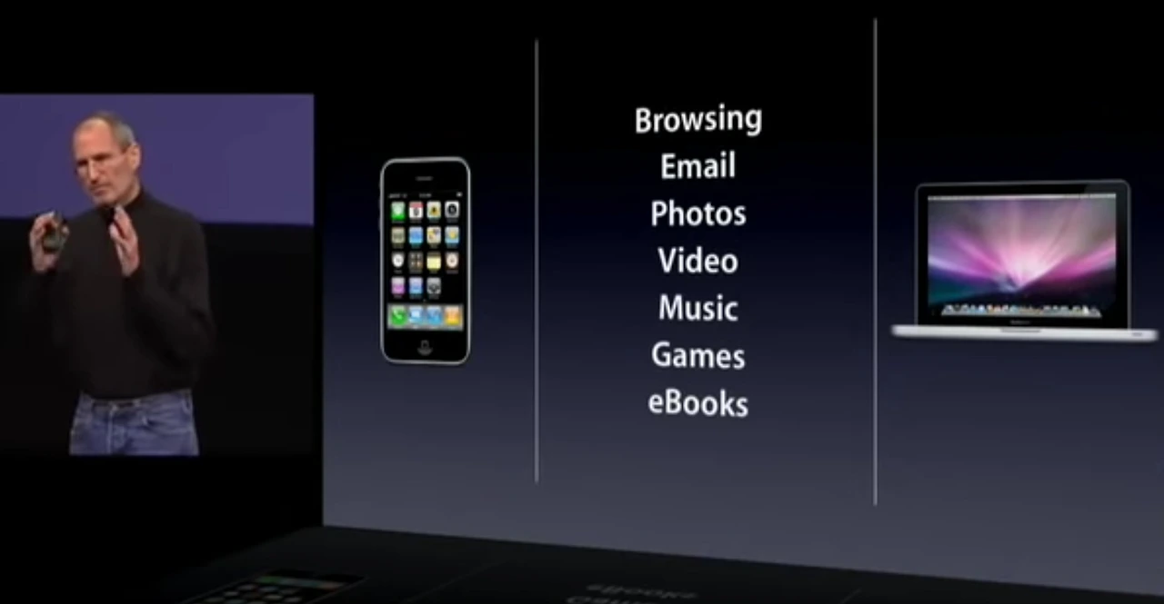 2010년 첫 iPad 출시 이벤트에서 iPad의 포지션을 설명하는 스티브 잡스