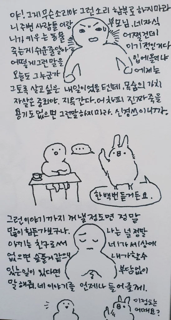 내가 매일 힘들어서 죽고 싶다고 말하지만 사실 죽고 싶지 않다. 죽고 싶다는 말이 죽을 거야는 아니다.