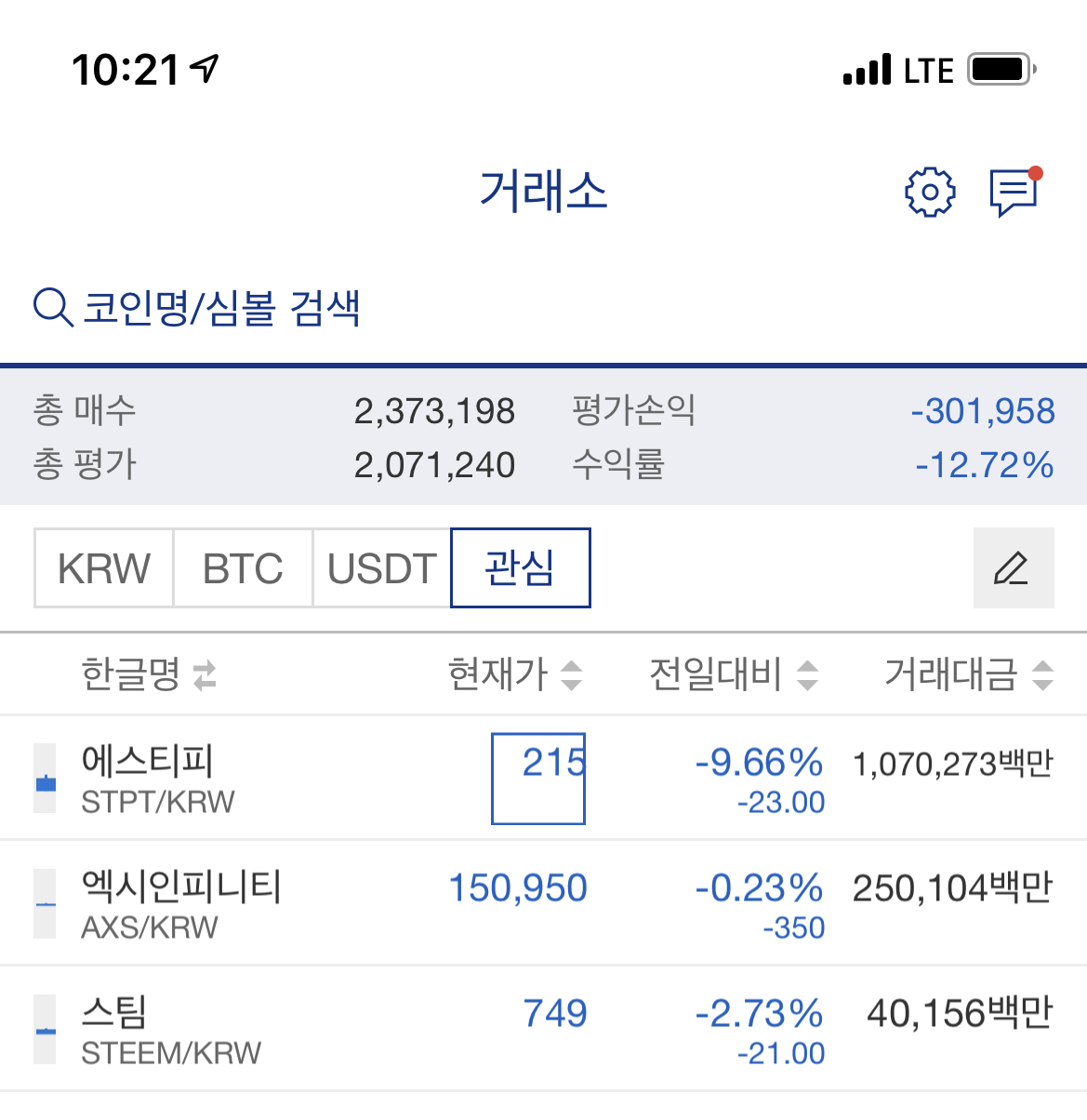 어제 급등한 코인이 오늘 아침에도 좀비처럼 살아났길래 이건 또 올라갈 것 같은 말도 안 되는 믿음으로 매수를 했다. 그리고 마지막 잎새가 후드득 떨어지듯이 나락으로 떨어져 버렸다. 그 이름은 에스티피였다. 며칠 내내 보고 또 봐도 더 이상 오를 생각을 하지 않았다.
