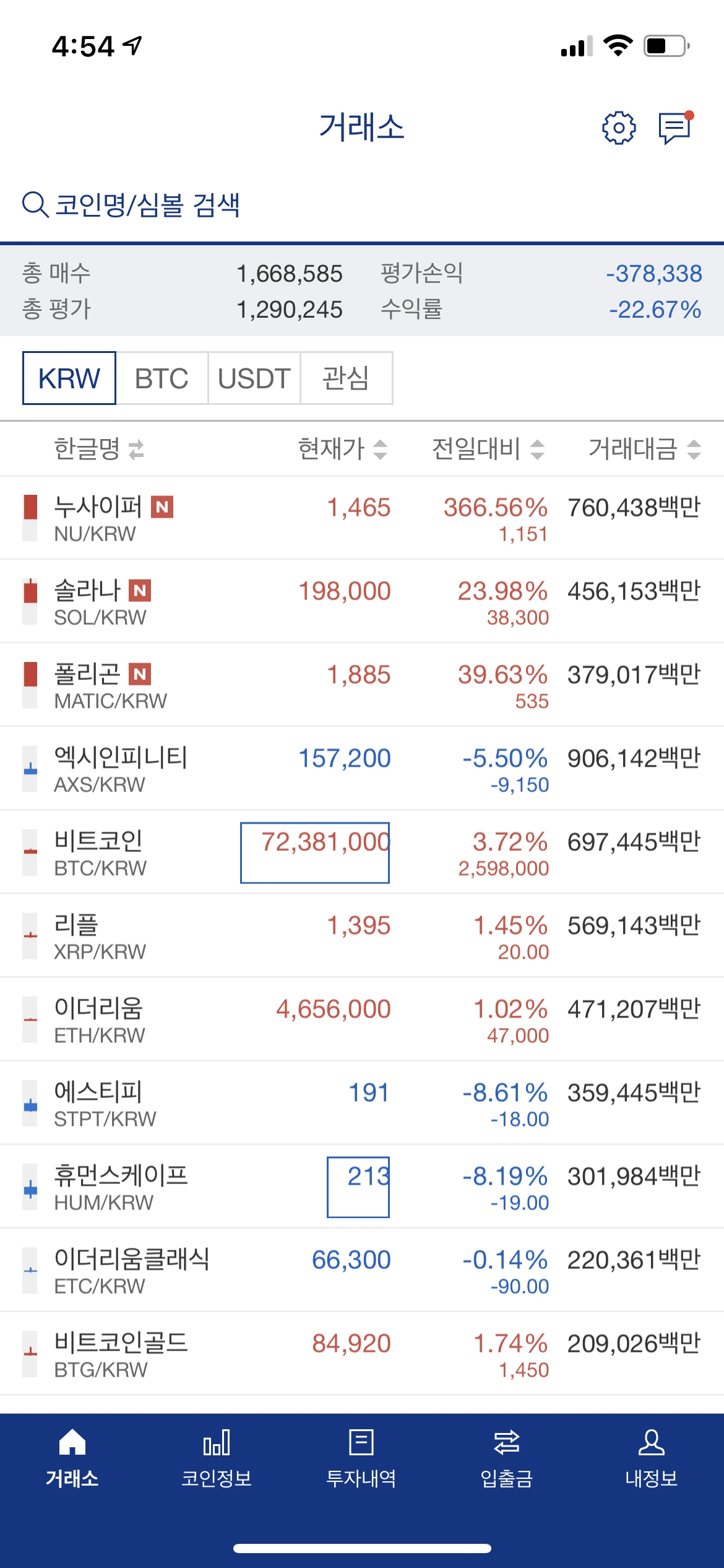 하루 종일 오늘은 얼마나 올랐나 시도 때도 없이 업비트 어플을 켜고 들어갔다. 밥 먹으면서 화장실에서 볼일을 보면서 양치를 하면서 길을 걸으면서 계속 코인을 들어다 봤다.