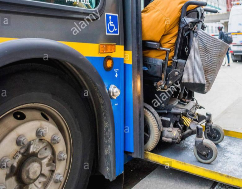 유모차를 끄는 아기 엄마, 휠체어를 탄 사람을 위해서 발판이 내려오기도 한다.