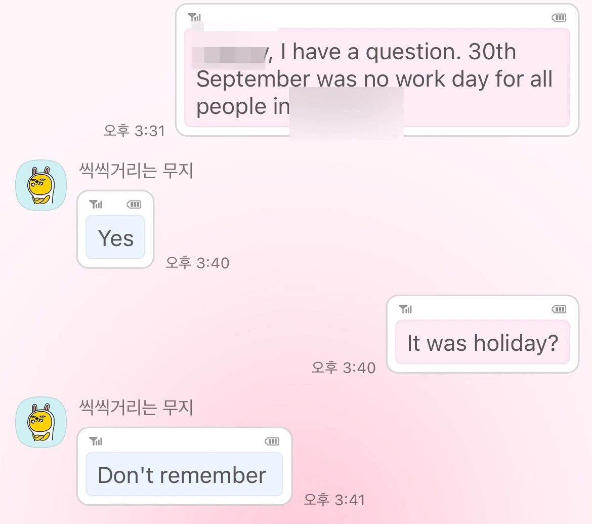 분명 이 대답을 한 사람은 직접 근무일을 확인하는 1차 담당자인데 모른다, 기억 안 난다는 대답이 돌아와서