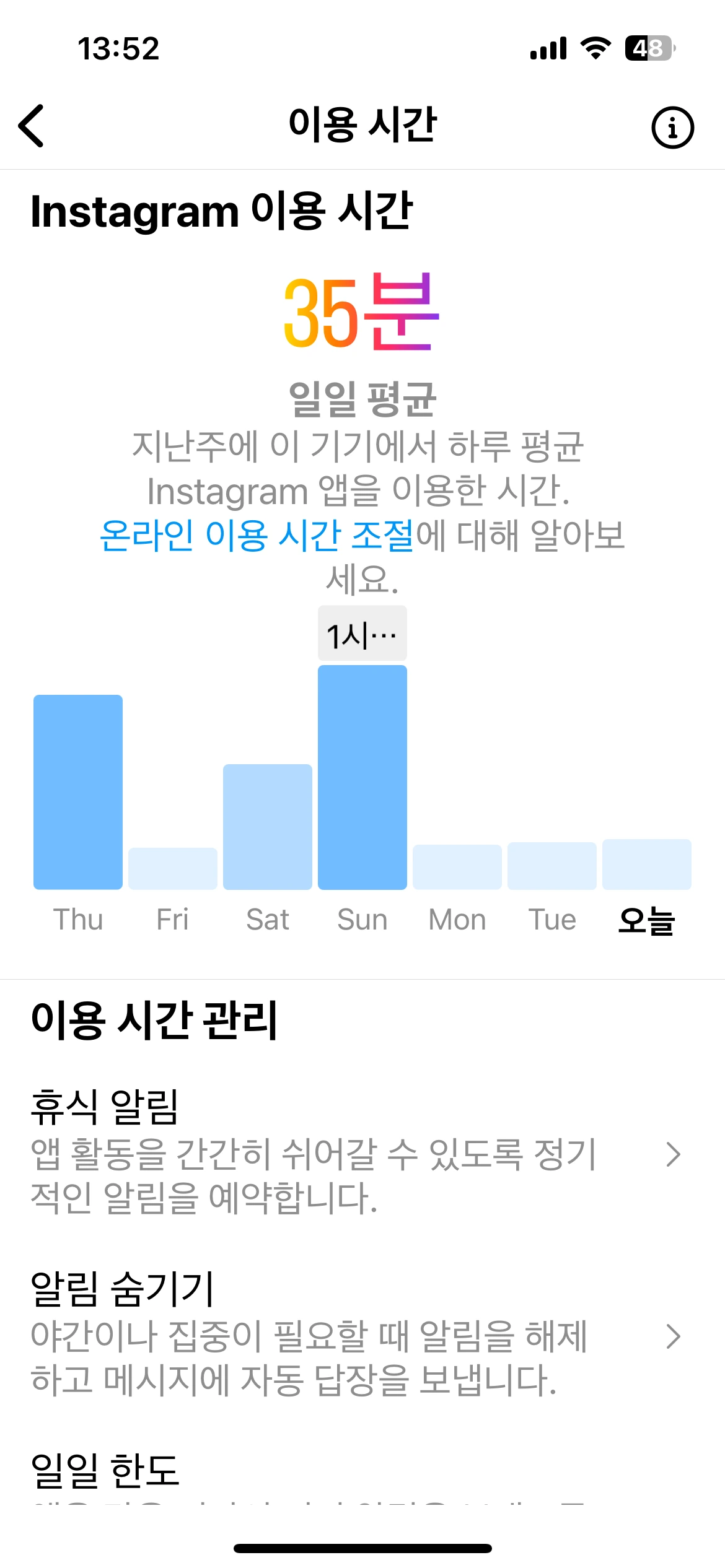 물론 모든 SNS를 아예 끊을 수는 없었지만 최대한 줄이려고 했다. 그래서 보통 몇 시간이던 인스타그램 스크린 타임이 20분으로 줄어들었다.