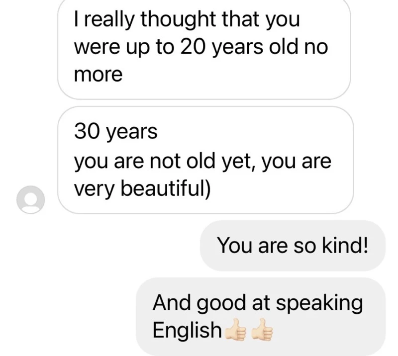 그렇게 번역기로 이야기를 하다가 "당신은 너무 아름답습니다"라고 번역된 문장이 핸드폰 화면에 비췄다.