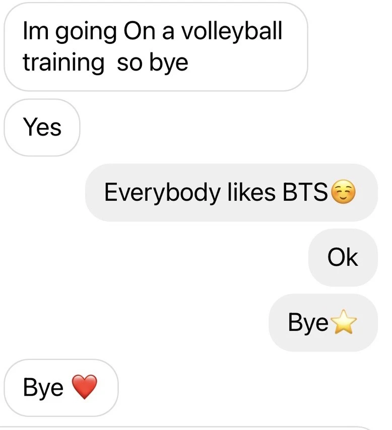 소녀들은 나에게 너무 아름답다고 말했다. 내가 30살이라는 것이 믿기지 않는다. BTS 콘서트에 가 봤냐 등 이야기를 나누다 발리볼 코칭을 받으러 떠나야 한다며 인사를 하고 떠났다.