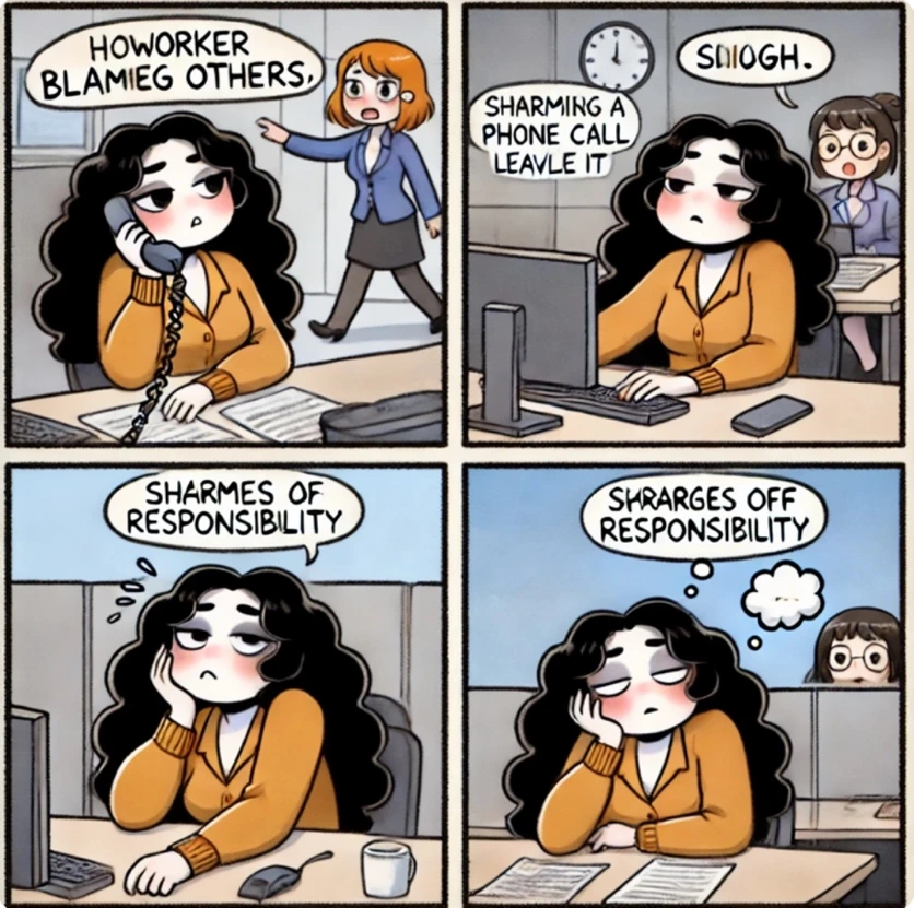 본인이 잘못한 부분도 절대 인정하지 않고 타인으로부터 잘못을 찾는 경향이 있다. 이건 꼭 외국인이라 그런 건 아니고 한국인들 중에서도 이런 습관 가진 사람 꽤 많다. 나도 사회 초년생 일 때는 내가 한 잘못을 인정하지 못하고 타 요소를 찾아서 나를 방어하려 애썼다. 하지만 잘못된 부분은 인정을 해야 앞으로 오류가 나지 않게 하려면 어떻게 할 수 있는지 같의 의논을 하거나 할 텐데 무조건 난 잘못 없어, 쟤가 잘못 전달해 준거야, 그거 내가 그런 거 아니라는 식으로 대답하는 비겁한 사람들이랑 일하면 진짜 기운 빠진다.