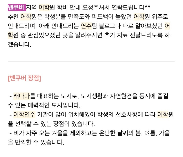 약 10개의 유학원과 유선 상담을 하고, 카페에는 질문글을 남겨보면서 어떤 어학원을 다닐지 고민했다.