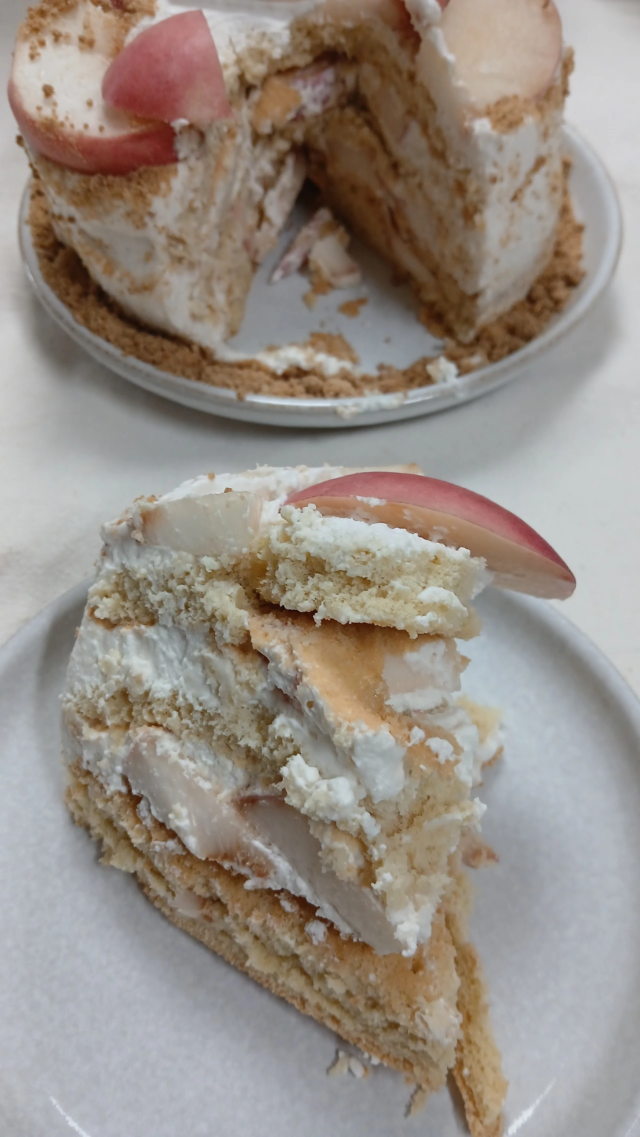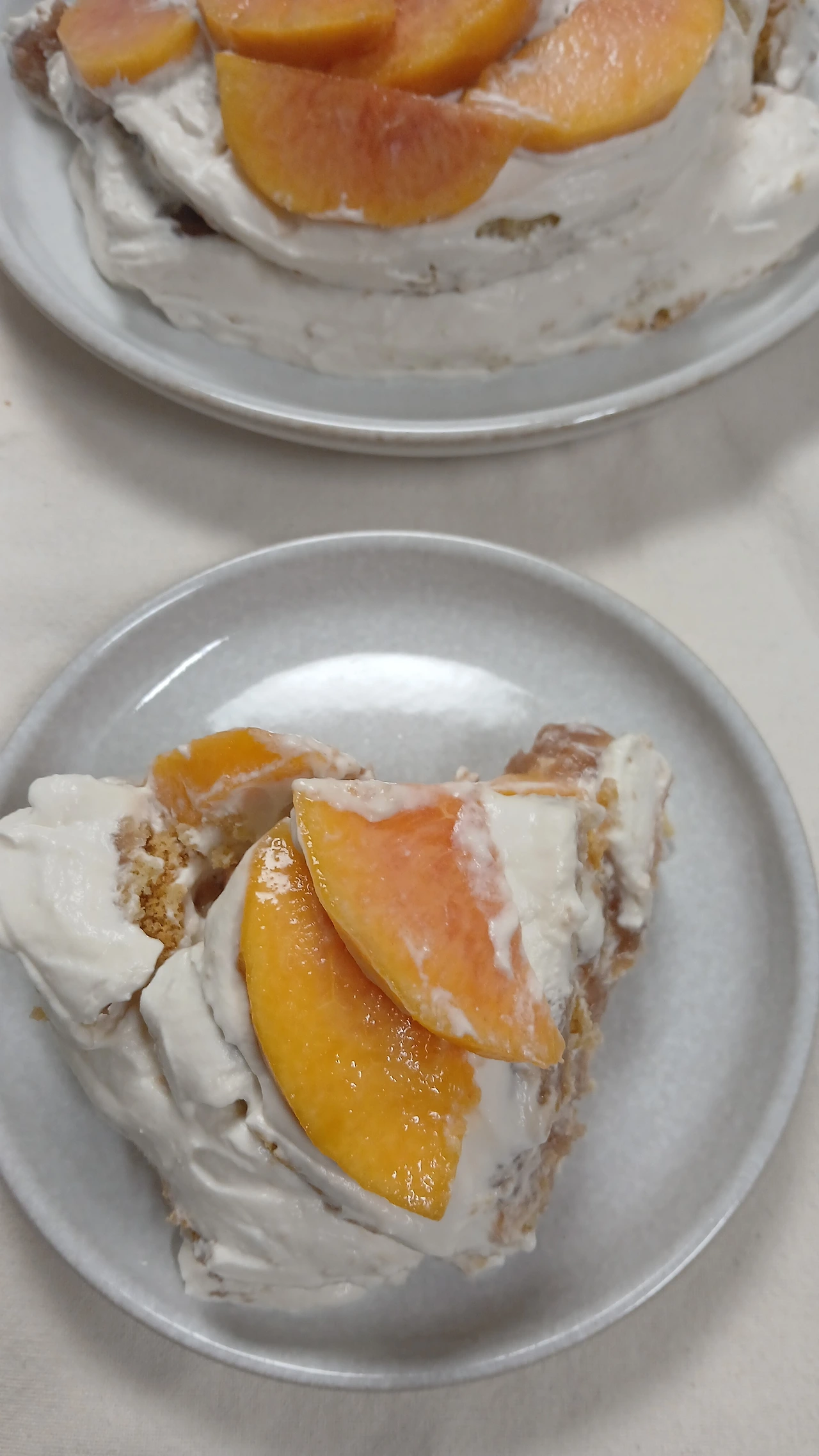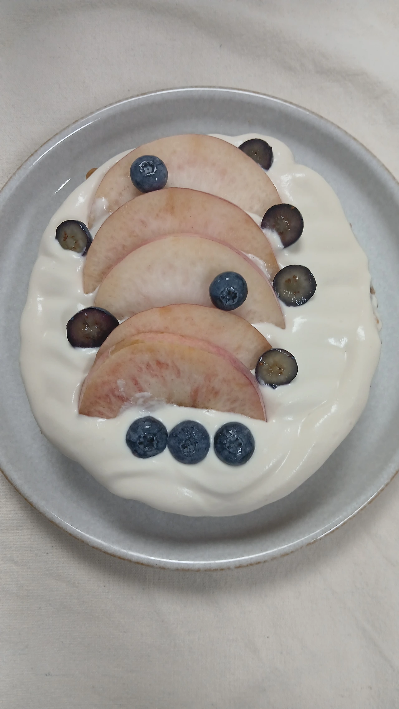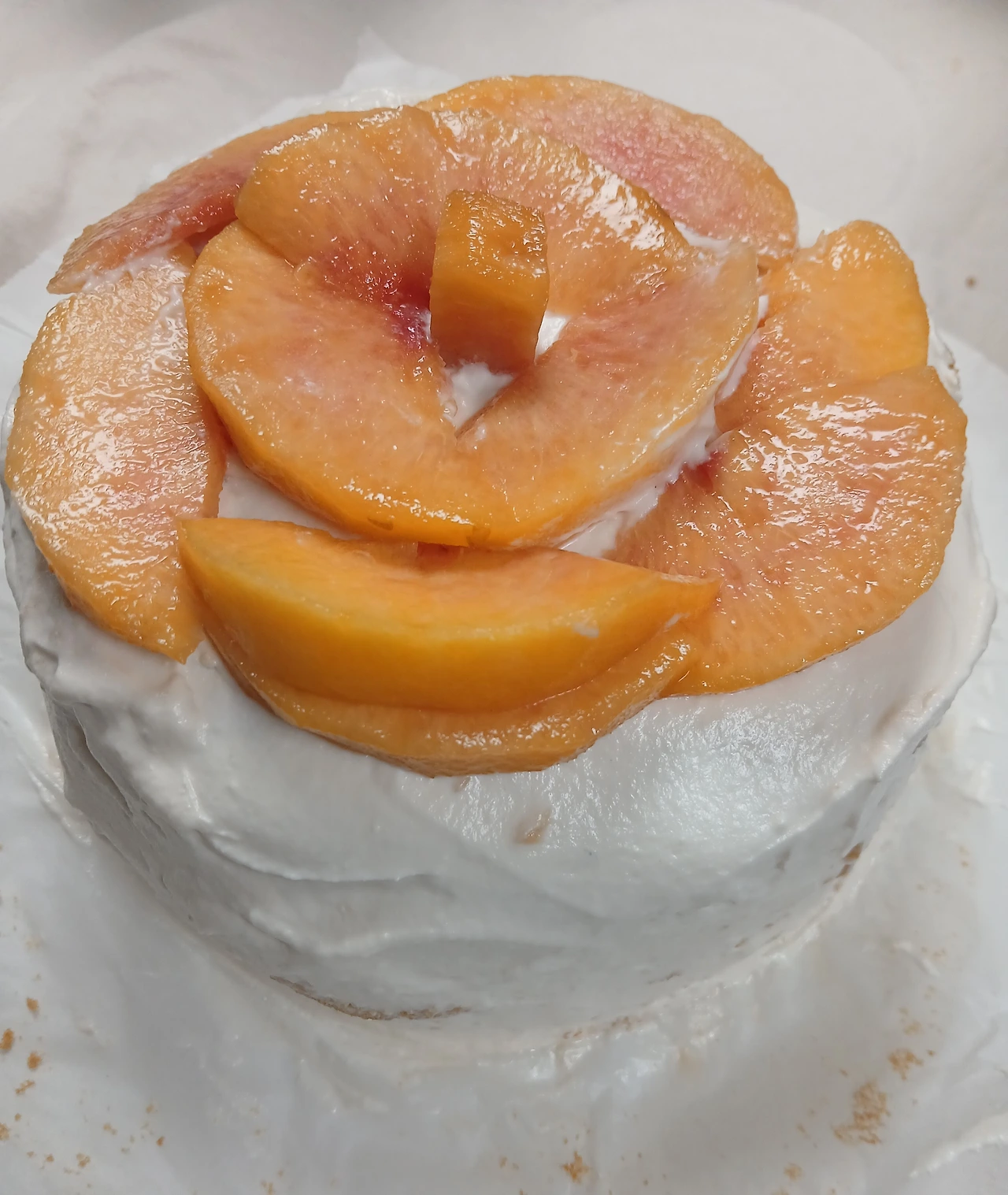 지난 한 달간 복숭아로만 간식을 준비했다. 올해 여름 내내 에어컨을 안 틀어도 그럭저럭 지낼 만 했는데, 생크림이 녹는다는 애로점이 있었다. 그래도 실온 34도에서 아이싱한 결과는 시멘트를 잘못 바른 길바닥처럼 거칠었다. 요거트 크림으로 해도 마찬가지, 장식 또한 시간 없어 대충한 모양새가 투박했다.