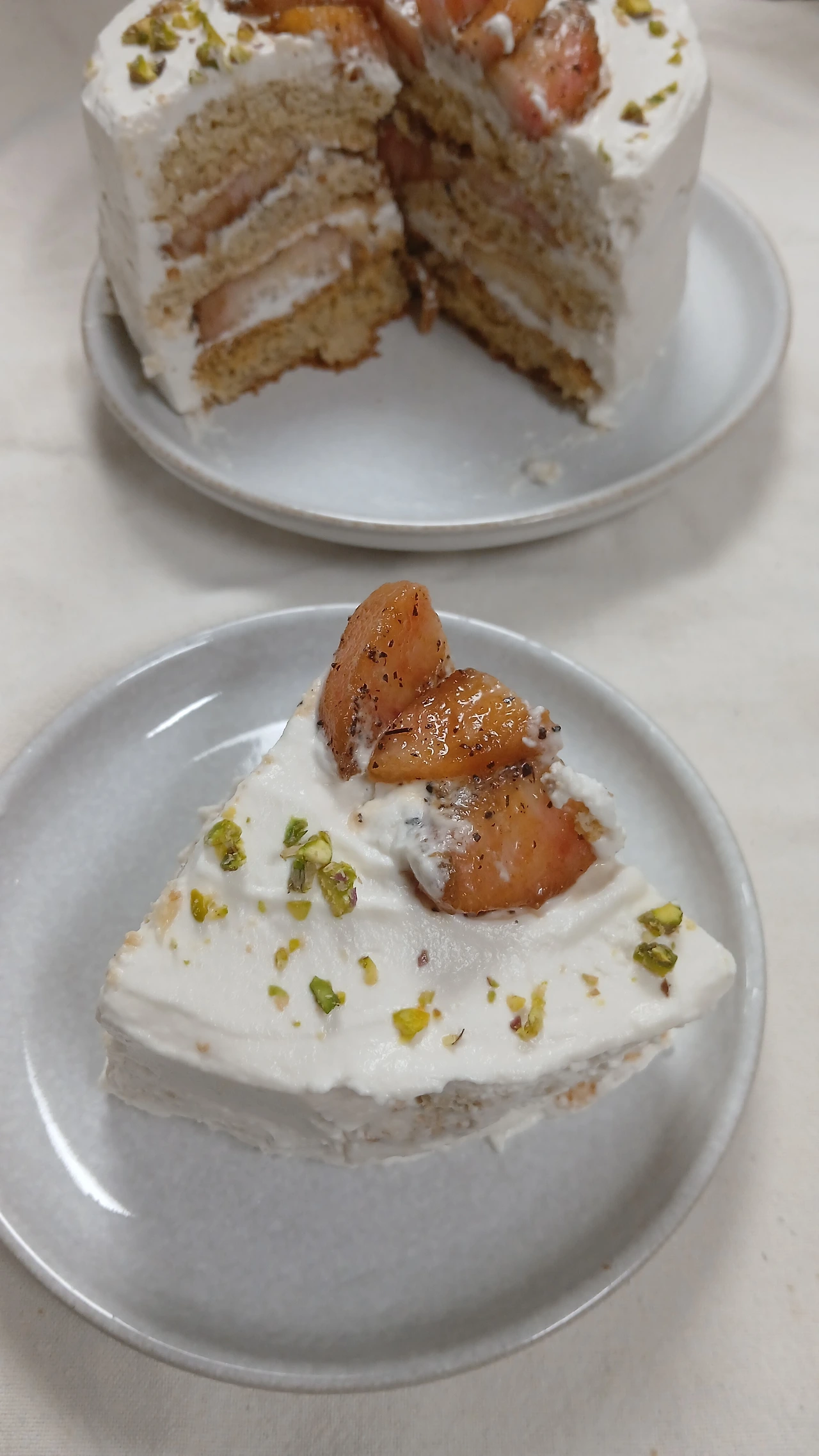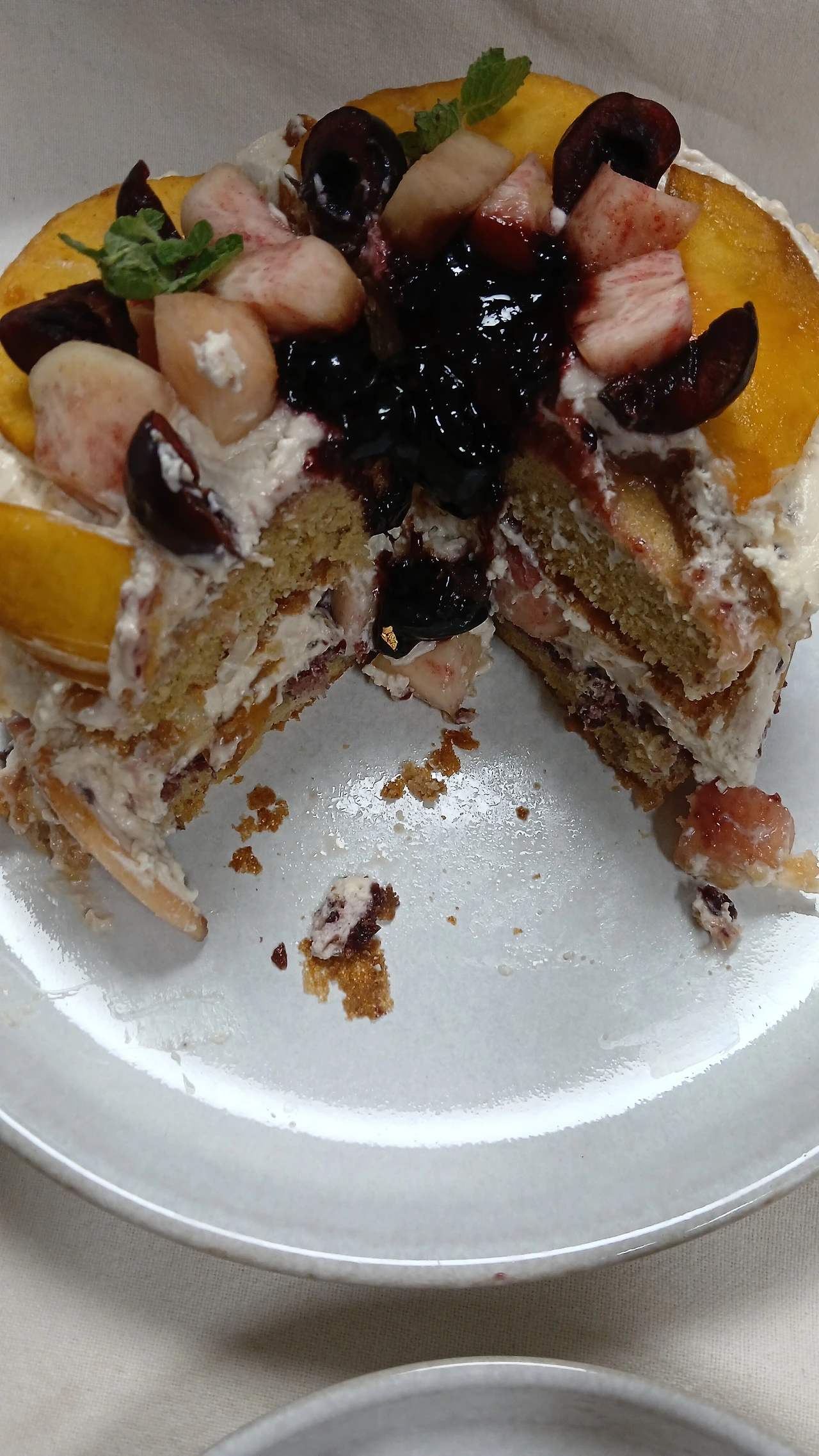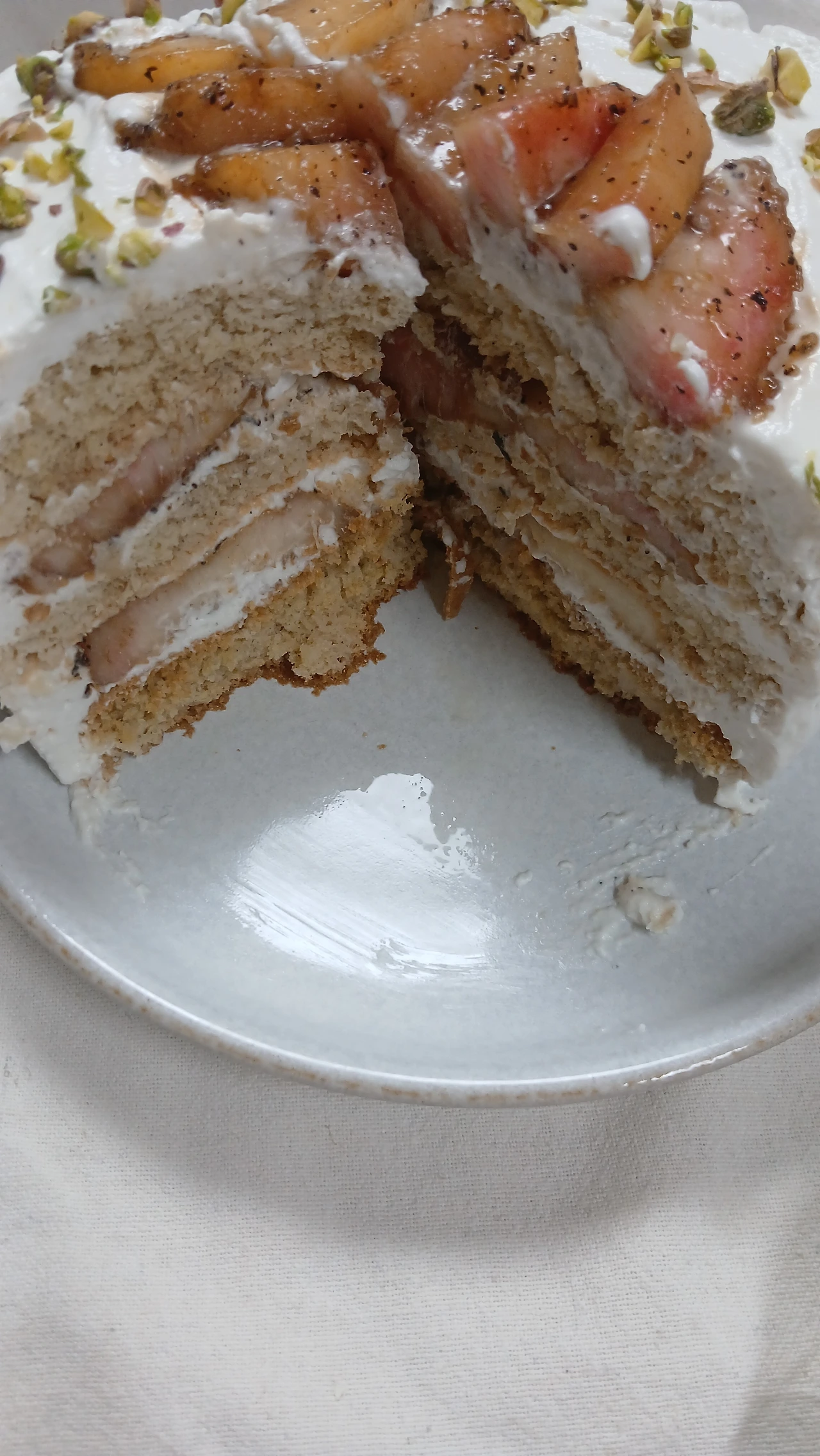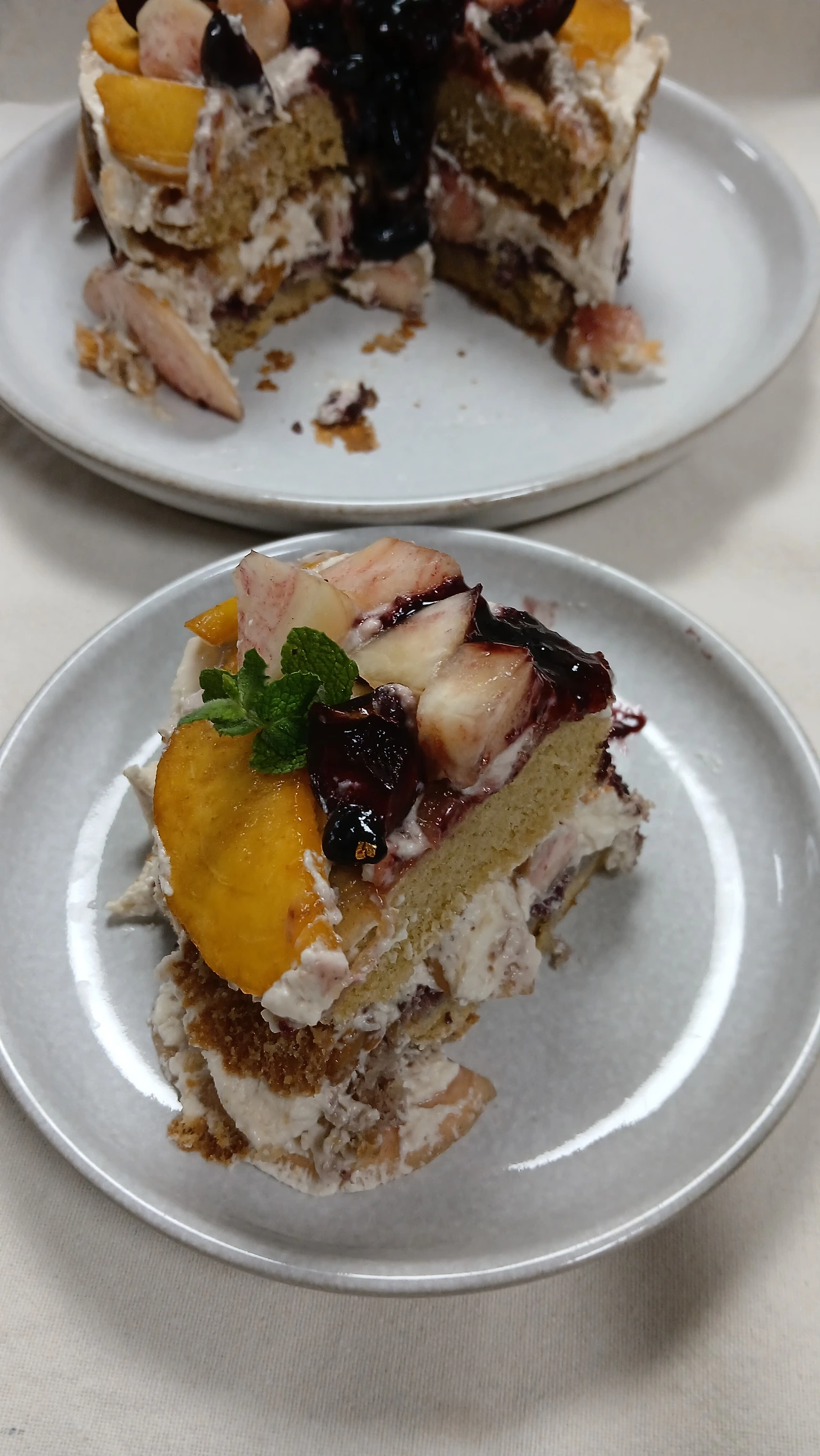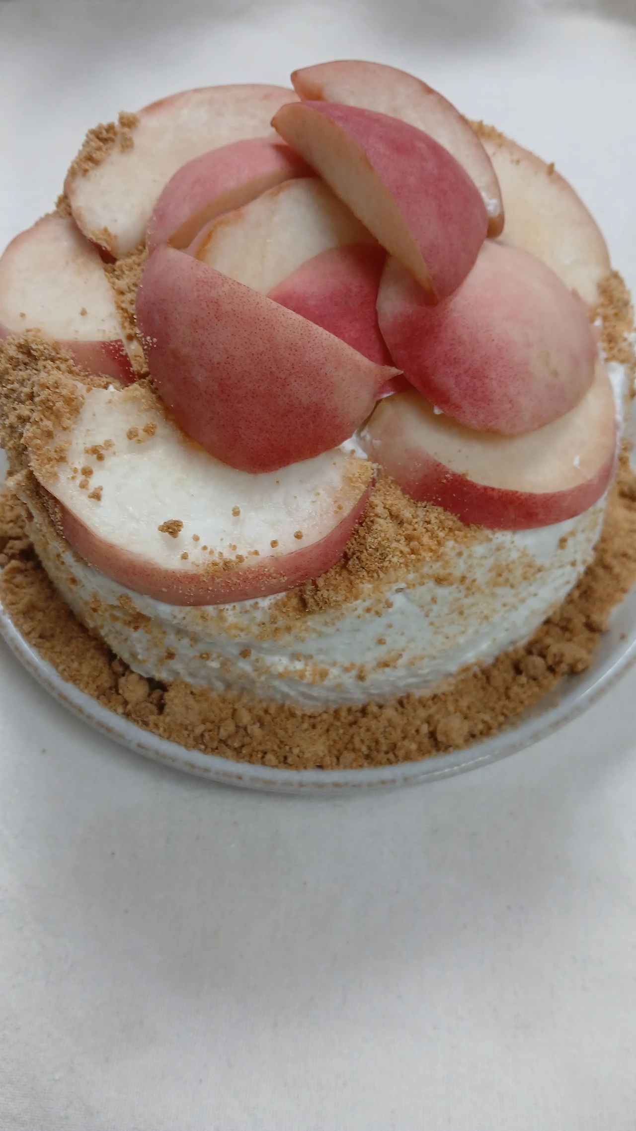 지난 한 달간 복숭아로만 간식을 준비했다. 올해 여름 내내 에어컨을 안 틀어도 그럭저럭 지낼 만 했는데, 생크림이 녹는다는 애로점이 있었다. 그래도 실온 34도에서 아이싱한 결과는 시멘트를 잘못 바른 길바닥처럼 거칠었다. 요거트 크림으로 해도 마찬가지, 장식 또한 시간 없어 대충한 모양새가 투박했다.