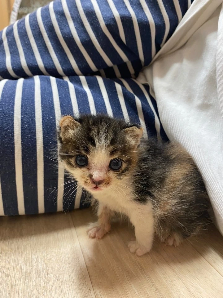 눈도 못 뜬 새끼 고양이가 마당 한구석에 버려져 있던 것이다. 죽은 듯이 움직이지도 않기에 엄마는 차마 손으로 만지진 못하고 삽으로 살짝 건드렸는데 그때부터 야옹야옹! 동네가 떠나갈 만큼 우렁찬 목소리로 본인의 존재를 어필하기 시작했다. 친한 집사 아주머니의 도움으로 병원 검진과 목욕까지 마친 녀석. 엄마는 어미가 데리러 올 지 모르니 당분간 끼니는 챙겨주며 마당에서 키우겠다고 했다.