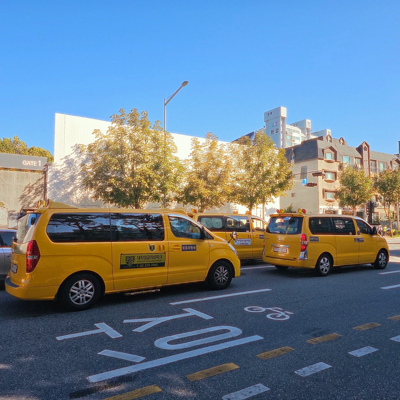 잠원동 아침풍경 - 도로 위 노란색 영어유치원버스들