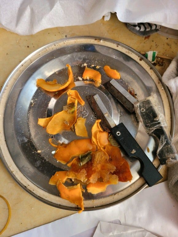 그 중간에 우리가 옛날 연필이나 깎던 도◯코 칼로 감을 깎아드신 것도 보였다. 녹슨문구칼의 황당한 발견. 위생은 말해 무엇하나...