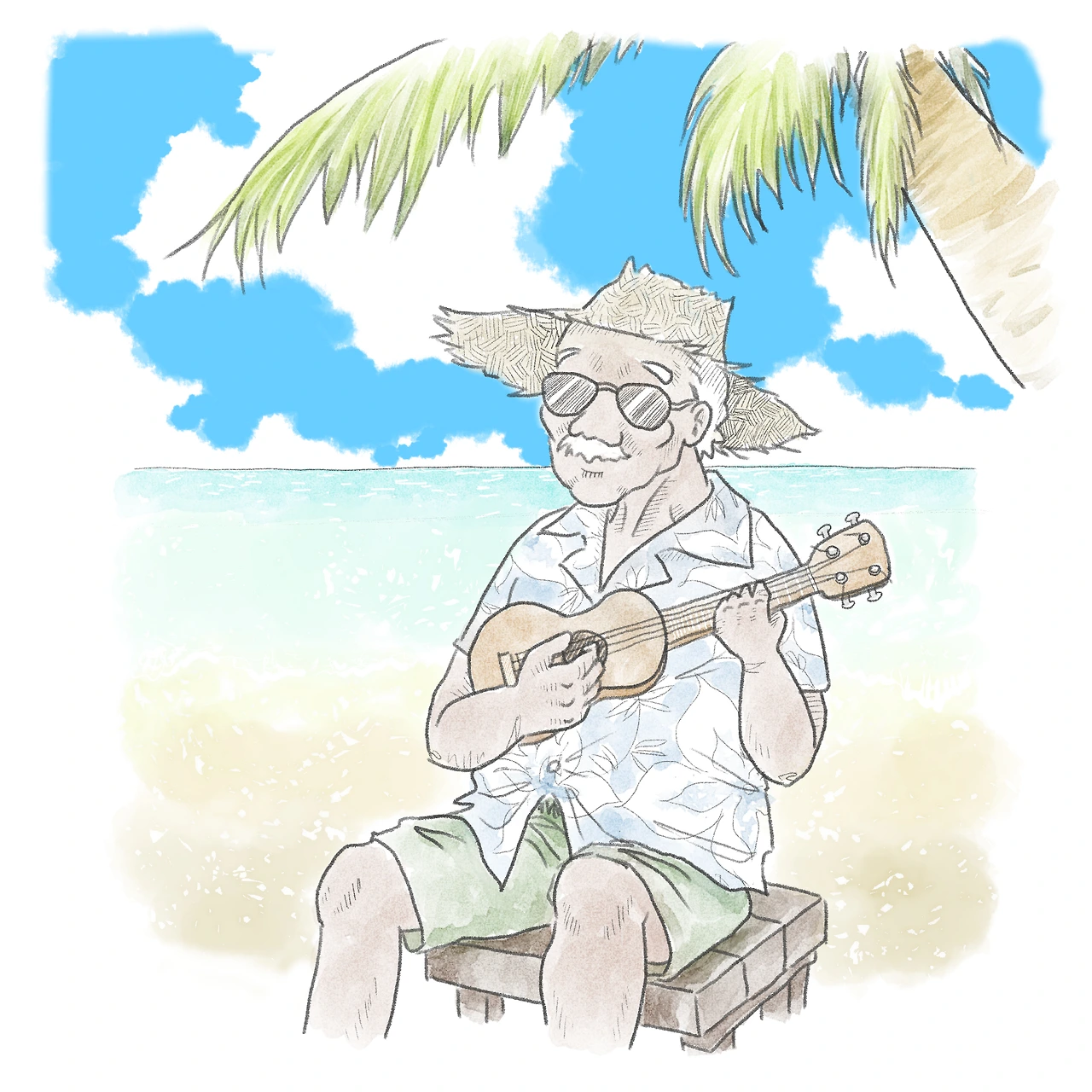 반복적으로 움직이던 손가락이 멈추고 멍하니 멈춰있던 동공이 흔들리게 만든 건 영상 하나였다. 해변의 야자수 아래에 한 할아버지가 우쿨렐레를 연주하는 영상이었다. 어찌나 무심하고 대수롭지 않게 연주하는지 표정만 보면 그냥 배나 긁적긁적 긁으며 늘어져 있는 듯했다. 그게 너무 편하고 자유로워 보였다. 보는 나까지 느슨하게 늘어질 만큼.