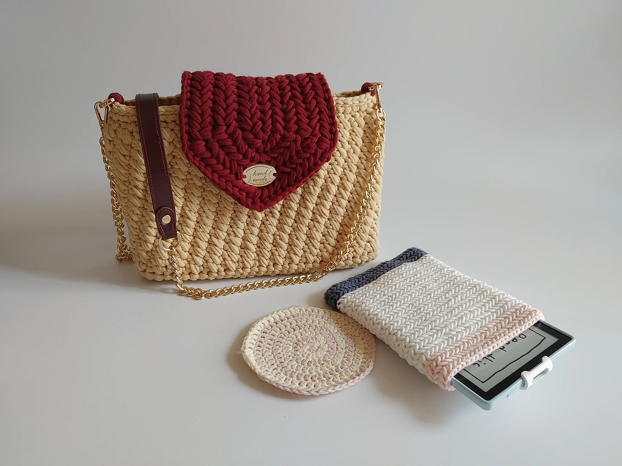 직접 뜬 가방과 차받침, 이북리더기 파우치