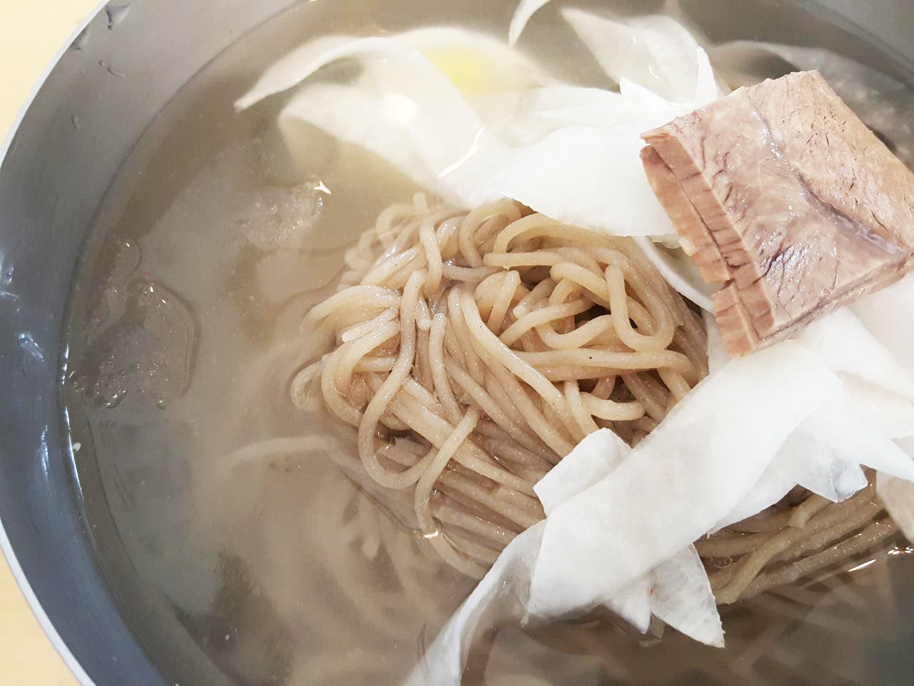 첫인상을 깨 보자 싶었던 건 어느 해 겨울이다. 만두 먹으러 들어갔는데, 웬일인지 그 날은 평양냉면 한 번 다시 먹어보자는 마음이 들었다. 속는 셈 치고 시도해보자며, 그 허여멀근한 냉면을 한 입 두 입 먹는 사이 첫인상과 다르게 국물의 담백한 깔끔함이 단숨에 느껴진다. 한 그릇을 다 비워갈 때 즈음 그 깊은 맛에 쏙 빠져버렸다. 또다시 한 그릇을 시켜 먹고 싶은 마음이 굴뚝이었지만, 볼록 부른 배 덕분에 겨우 나왔다.
