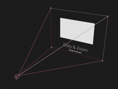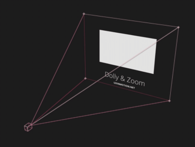 'Dolly & Zoom'은 카메라를 사용하는 영화적인 개념으로, 오브젝트의 움직임이나 화면의 크기를 멀리 있는 화면부터 가까운 화면까지 부드럽게 연결합니다.(또는 그 반대로)