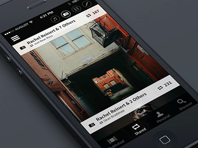 위의 예시에서, 헤더 이미지는 모양과 위치는 변하지만, 내용은 변하지 않고 앨범 커버로 변경됩니다. 여기서 'Masking'을 통해 내용이 유지되는 동안 오브젝트는 어떠한 형태로도 변할 수 있는 이점을 가지게 됩니다. 이것은 상당히 깔끔한 트릭으로, 사용자의 입력 후에 전환되는 비실시간 인터랙션으로 발생합니다.