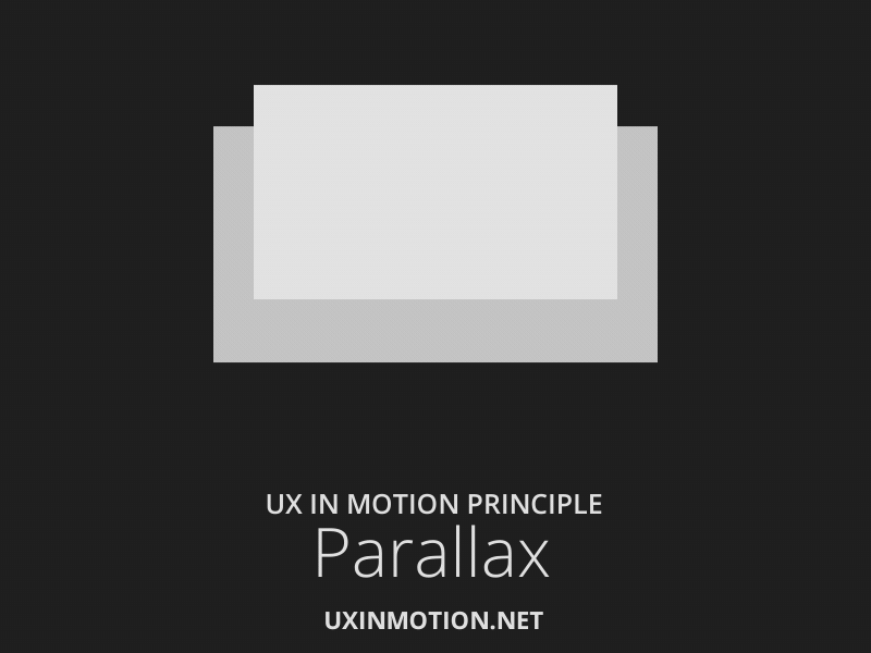 이것이 사용자에게 미치는 영향은 인터랙션의 지속시간 , 다양한 오브젝트의 관계를 명확하게 정의하는 것입니다. 전면에 보이는 오브젝트 또는 '빠르게 움직이는'오브젝트는 사용자에게 '가까이 있음'으로 알려줍니다. 반대로 '느리게'움직이는 배경 오브젝트 또는 오브젝트는 '더 멀리 떨어져 있는'것으로 인식됩니다.