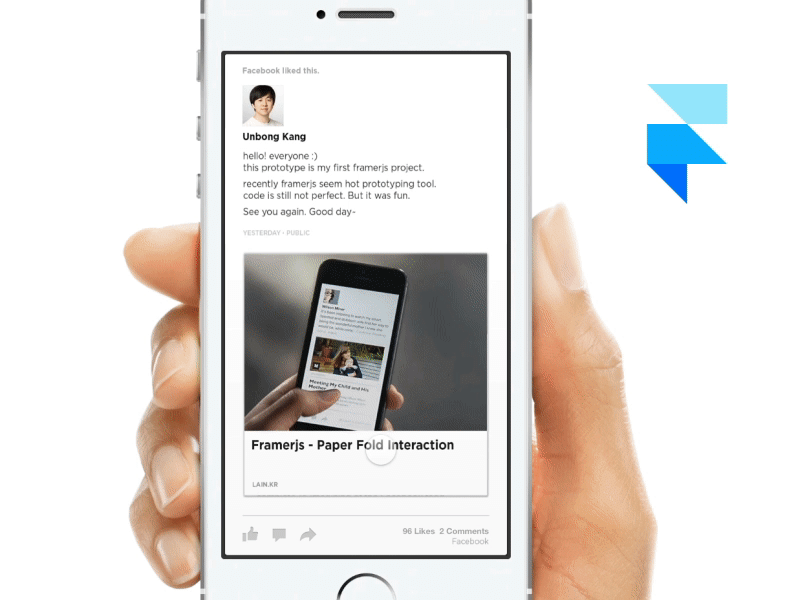 신문을 펴고 접는 경험을 적용한 “Paper”앱 인터랙션 예시 – Fold Interaction by Framerjs
