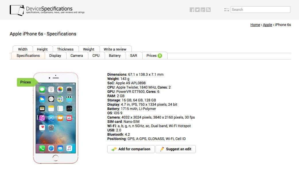 브랜드별 모든 디바이스 스펙(CPU,Display,Camera, 등) – devicespecifications
