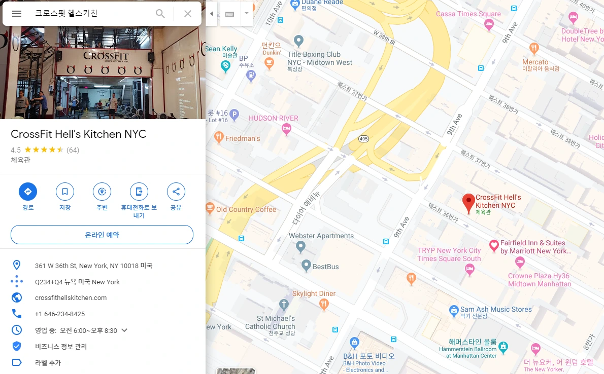 일단 세 곳도 구글 리뷰를 통해 탐색해보기로 했다. 리뷰 개수 자체는 월스트리트 점이 가장 많았고, 셋 다 평가는 비슷하게 무난했다. 크로스핏 헬스 키친 마냥 트레이너에 대한 악담이 없어서 일단 안심했다. 위치도 숙소에서 셋 다 비슷하게 떨어져 있었다.