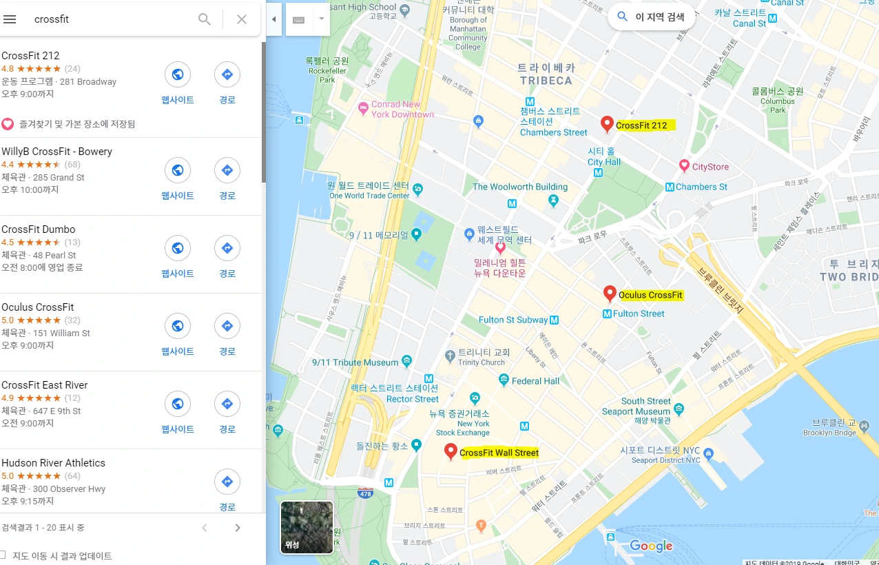 새로 옮긴 숙소 근처에는 크로스핏이 눈에 보이지 않았다. 그래서 구글로 검색해보기로 했다. 그랬더니 3개 박스가 검색됐다.
