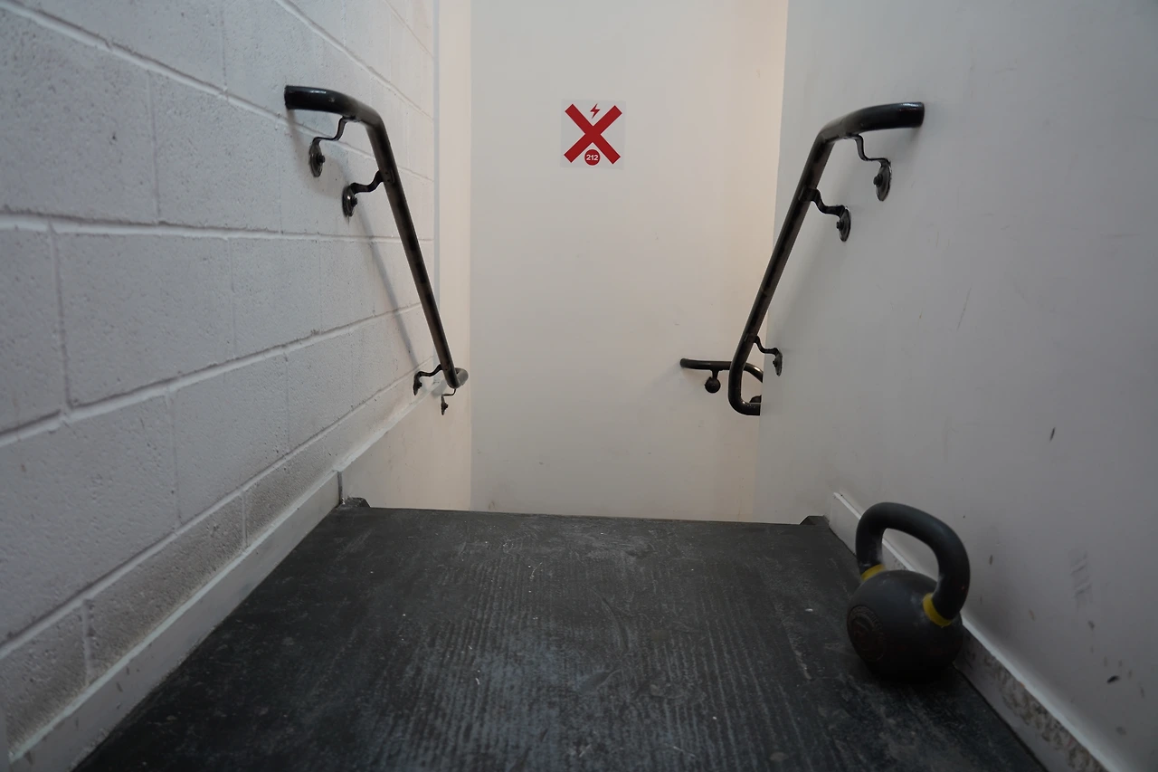 크로스핏 월스트리트와는 달리 지하에 있었지만 생각보다 입구나 진입로가 깔끔하고 깨끗해서 기대가 더 커졌다. 그런데 내려가는 계단 위에 엄청난 크기의 케틀벨이 문지기처럼 놓여 있는 게 보았다. "나를 한 번 들고 가야 통과할 수 있다네"라고 말을 건내는 것 같았다. 입구부터 쫄게하네..