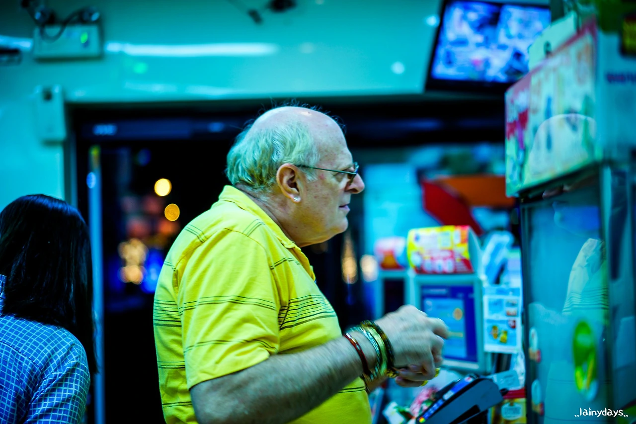 재즈바는 새벽 2시까지 공연을 하지만 숙소로 돌아가야 했기에 아쉽게도 공연장을 나왔고 잠시 근처 편의점에 들렀다. 그런데 아까 그 공연장 맨 앞줄에 앉아계시던 할아버님을 보아서 급하게 담았다. 정말 인상 깊었던 분인데 오른팔에 팔찌를 주렁주렁 매단 걸 보니 보통 분은 아니구나 싶었다. 젊게 사시는 모습이 정말 보기 좋고 부러웠던.