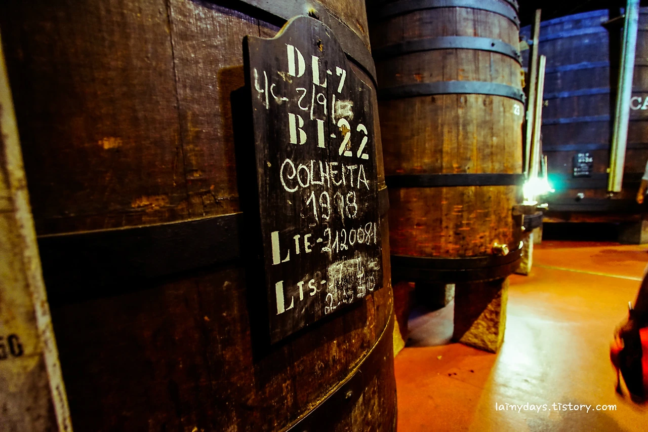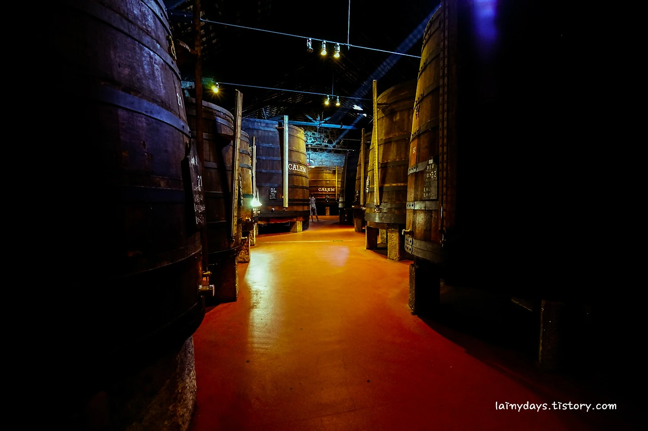 와인 창고 안에는 포트와인을 저장 중인 대형 오크통이 여러 개 놓여 있다. 사진으로는 그 크기를 짐작하기 어렵겠지만, 희미하게 보이는 중앙의 사람과 비교해보면 대략 감이 올 것이다.