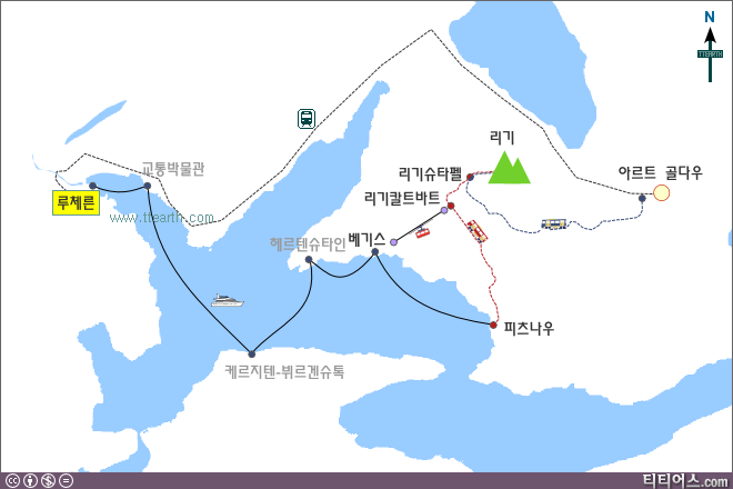 지상에 도착한 뒤 다시 루체른으로 돌아가는 유람선을 타면 된다. 산들의 여왕, 여왕이라 불리는 산, 스위스의 RIGI.. 거대한 자연의 포근한 품을 느끼고 싶으면 이곳으로..