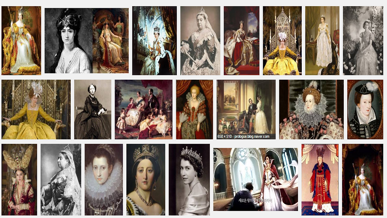 구글에서 '여왕'이라는 키워드를 통해 얻어낸 이미지 검색 결과다. 보는 사람에 따라 약간씩 다르겠지만 여기서 느껴지는 감정을 나열해보면, 우아함, 고귀함, 고풍스러움, 아름다움, 화려함 등일 것이다. 그리고 겉으로 보이는 이미지에서 따온 감정이 아닌 일반적인 감정을 떠올려보면, 온화함, 친근함, 포근함, 모성애 등이 되겠다.