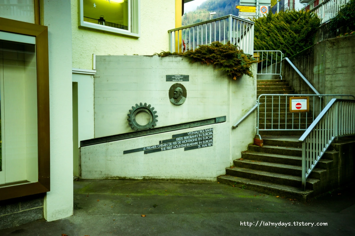 산악열차가 정차 중인 플랫폼 왼쪽에는 'the first montain railway in europe'이라는 유서 깊은 자랑거리임을 나타내는 글귀가 눈에 띈다. 여기에 대해서는 위키백과에 있는 소개글로 대신한다.