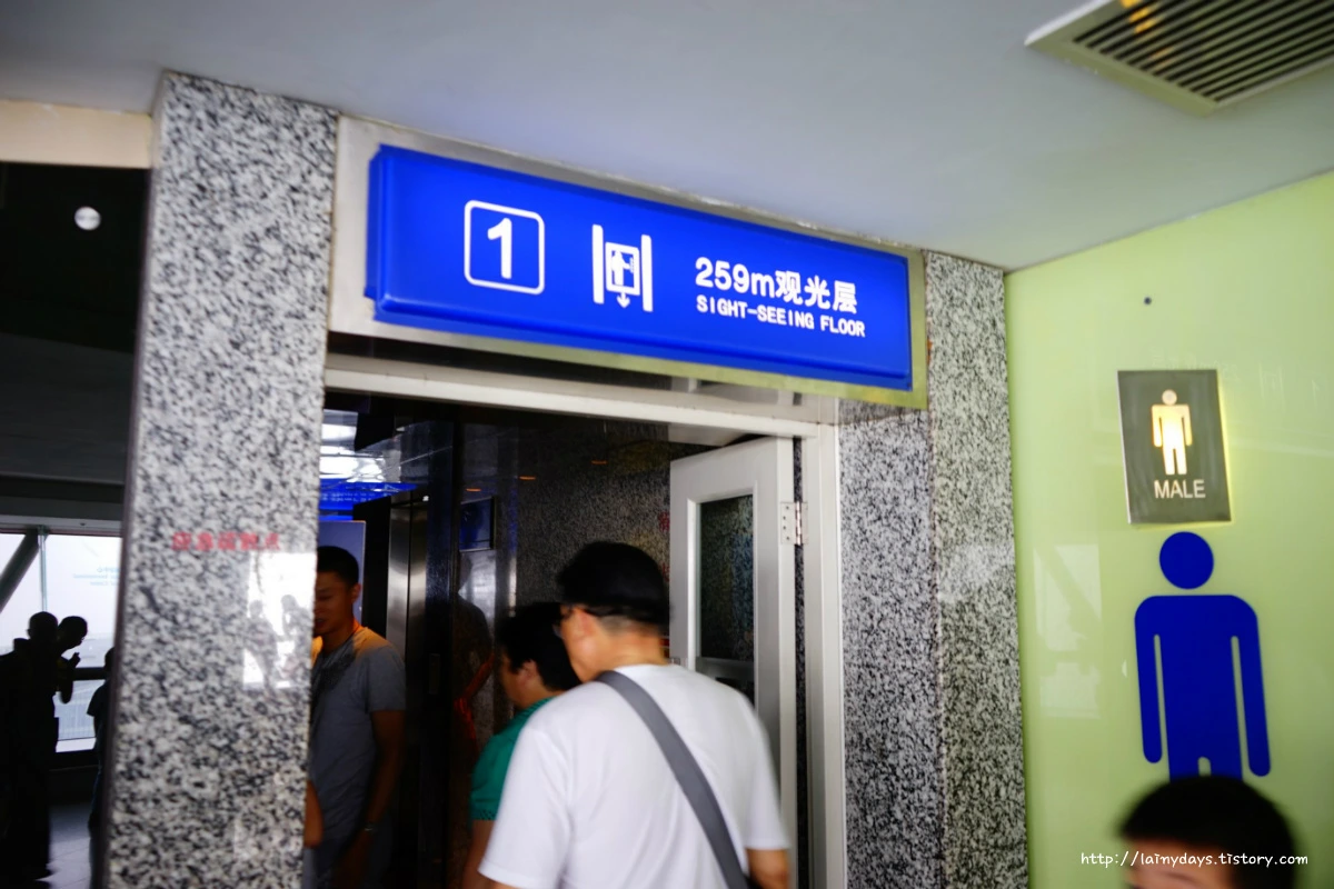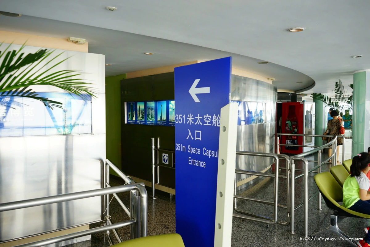 다행히 이 날엔 사람이 별로 없어서 동방명주 중앙 엘리베이터까지 순식간에 진출했다. 만약 사람이 많은 날에는 미로처럼 만들어진 길을 통과하느라 시간이 꽤 걸릴 것이다.