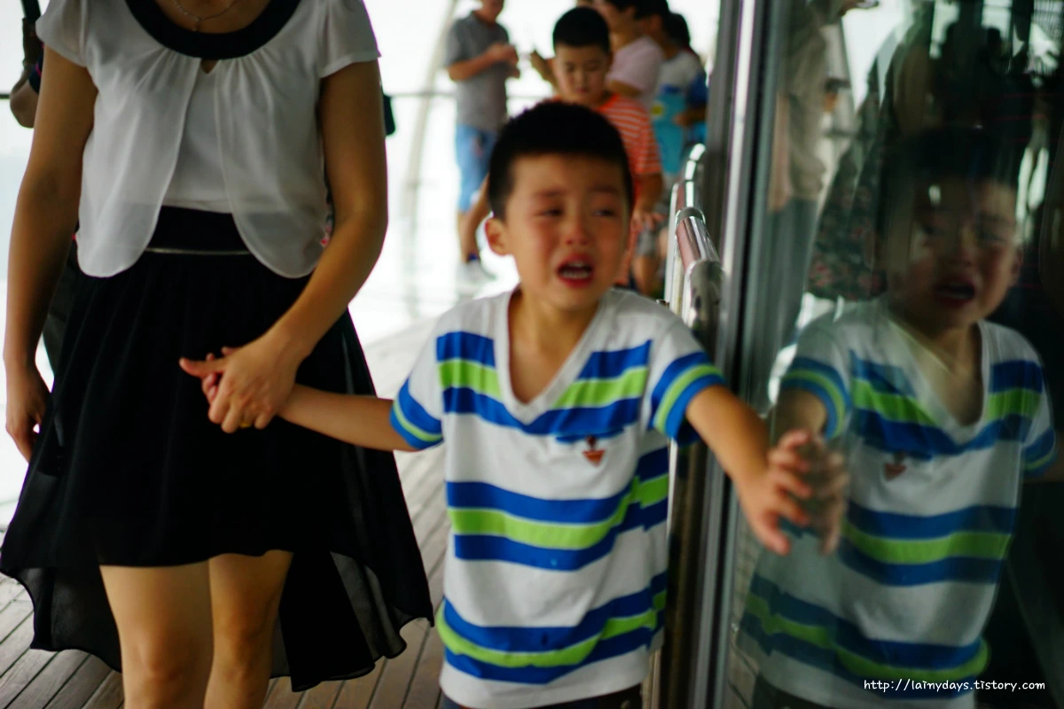 이번에는 어린이들 표정. 높이에 대한 인지를 못하는 아이들은 겁도 없이 뛰어다니며 재미있게 놀고, 높이에 대한 인지를 하기 시작한 혹은 겁이 많은 아이들은 제대로 걷지도 못하거나 유리 위에 발을 딛지도 못한 채 울고 있다. 한 가지 분명 한 건 아이들이 어른들보다 훨씬 더 과감하게 논다는 것이다.