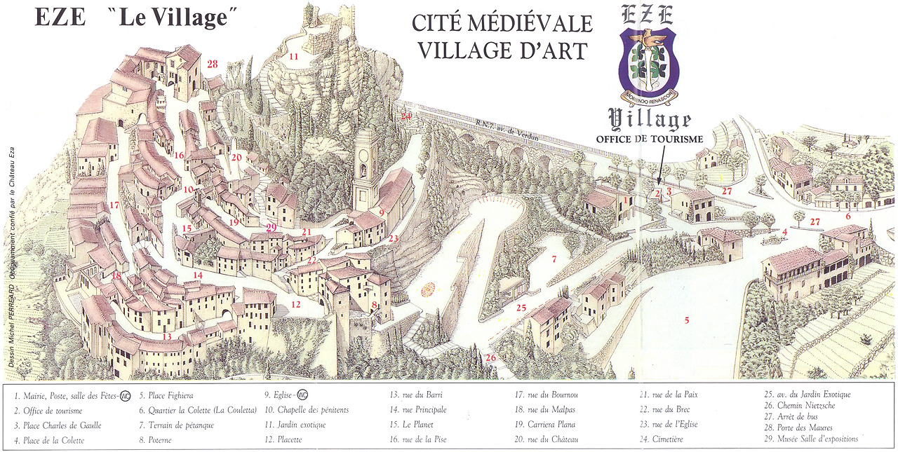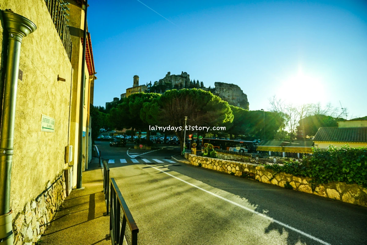 버스를 타고 에즈 마을에 내리면 (사실 어디서 내려야 할지 헷갈릴 법도 하지만, 사람들이 가장 많이 내리는 곳에서 따라 내리면 된다) 정말 한적한 시골 동네가 눈앞에 펼쳐진다. 별다른 표식도 없고 표지판도 없는 이곳에서 에즈 빌리지를 어떻게 찾지?라고 고민이 된다면 고개를 45도 위로 젖히고 서있는 자리에서 그대로 한 바퀴만 돌아보자. 돌다 보면 언덕 위에 위치한 고성이 눈에 걸릴 것이다. 그러면, 그 방향으로 곧장 걸어가기만 하면 된다.