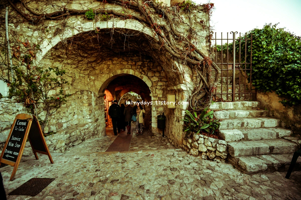 호텔 샤토 에자를 빠져나오면 육중하고 높다란 돌담이 나를 짓누른다. 위압감이란 게 바로 이런 것일 듯. 만약 현대적인 디자인의 난간이나 간판이 없었다면, 이곳은 21세기 남프랑스가 아닌 영락없는 16세기 남프랑스의 모습이었을 것이다.